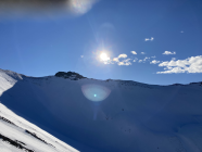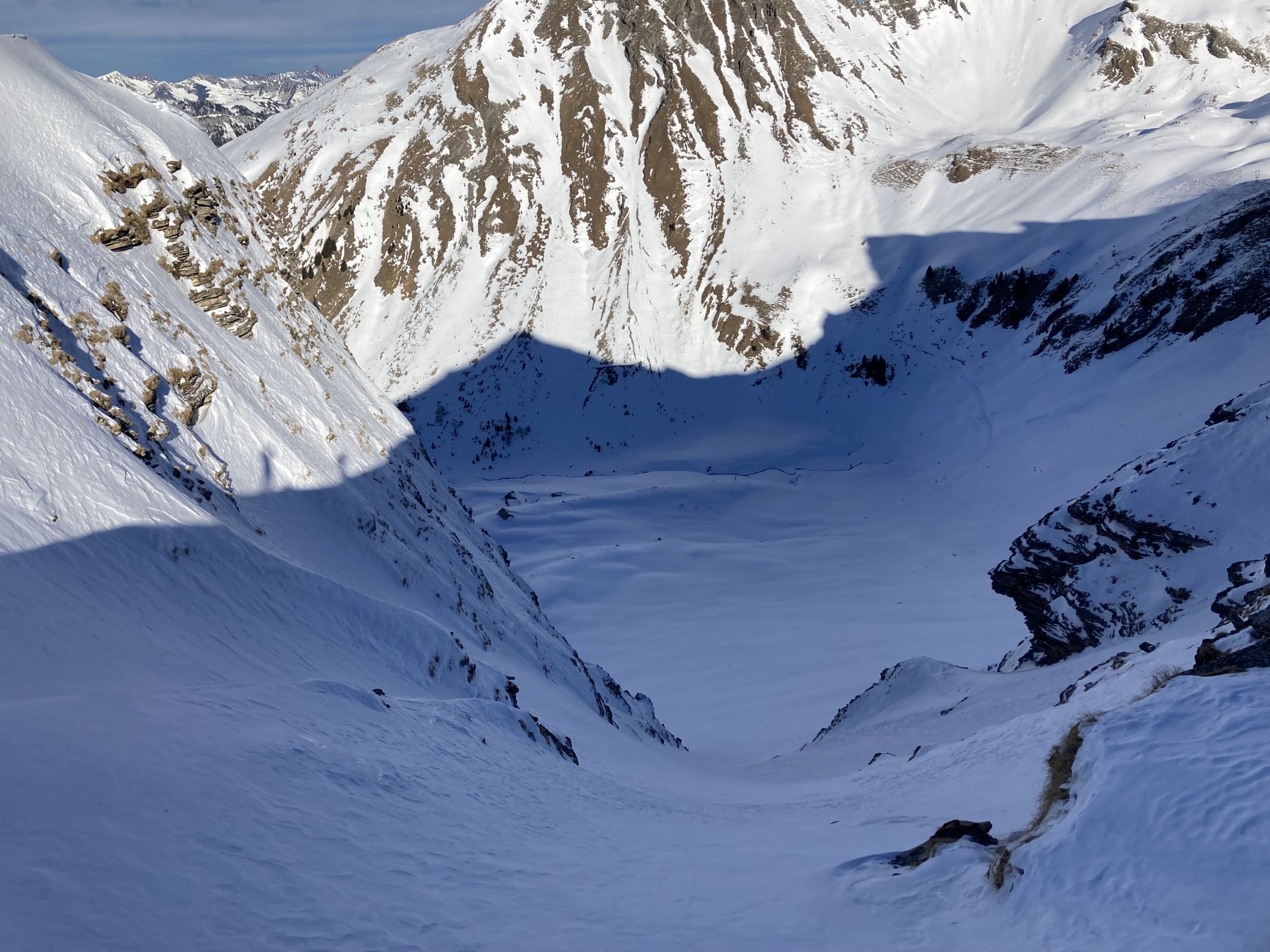 Im Culli in der Abfahrt bis ca 2200 m Presspulver mit Winddeckel, dann unten raus sehr schön zu fahrender Presspulver bis ca. 1800 m. Danach wechselnd hart und eisig bis zum Parkplatz.