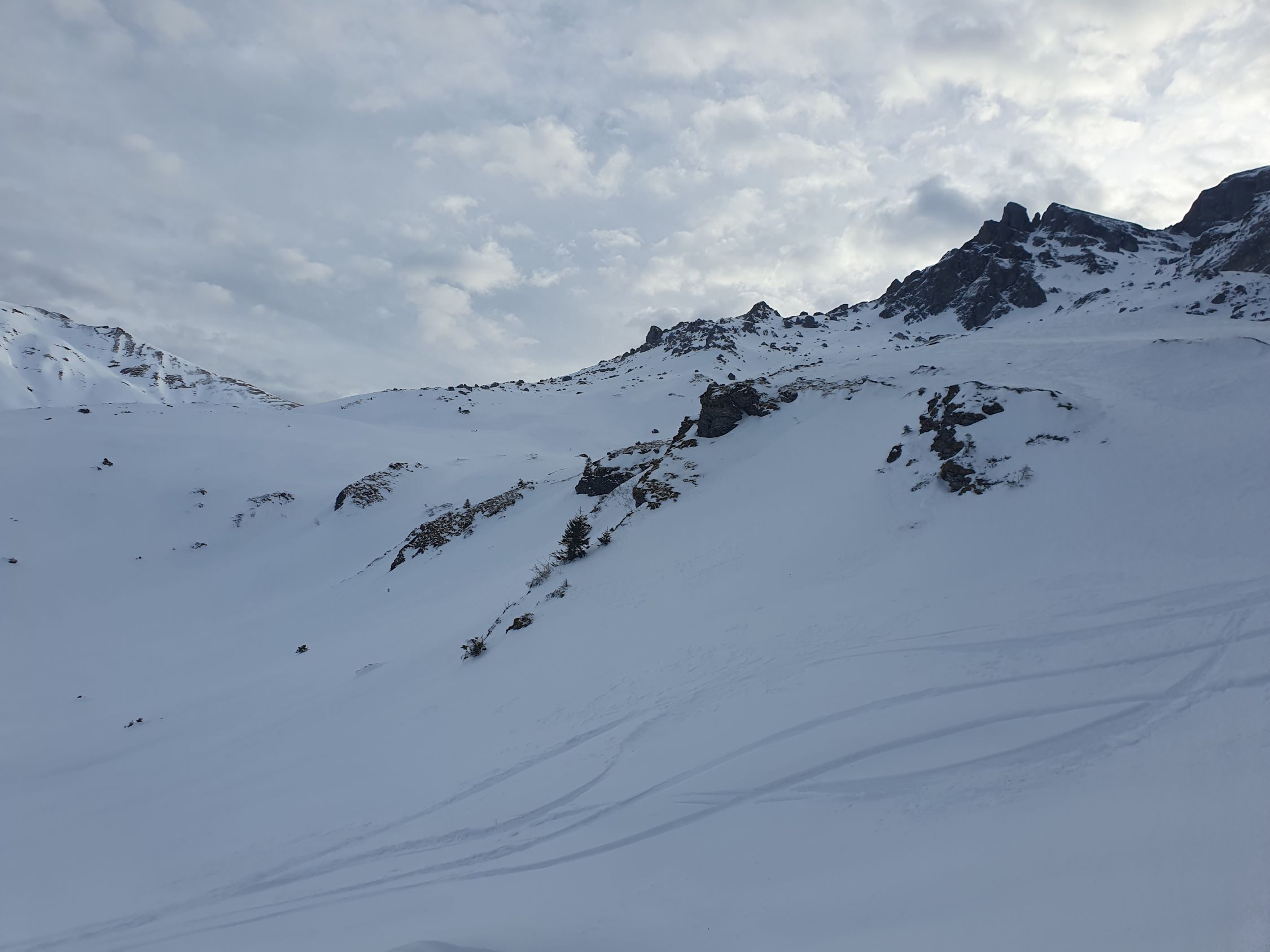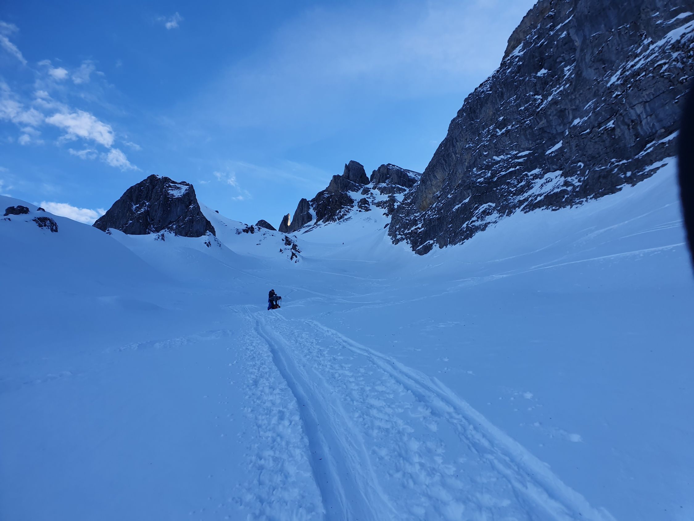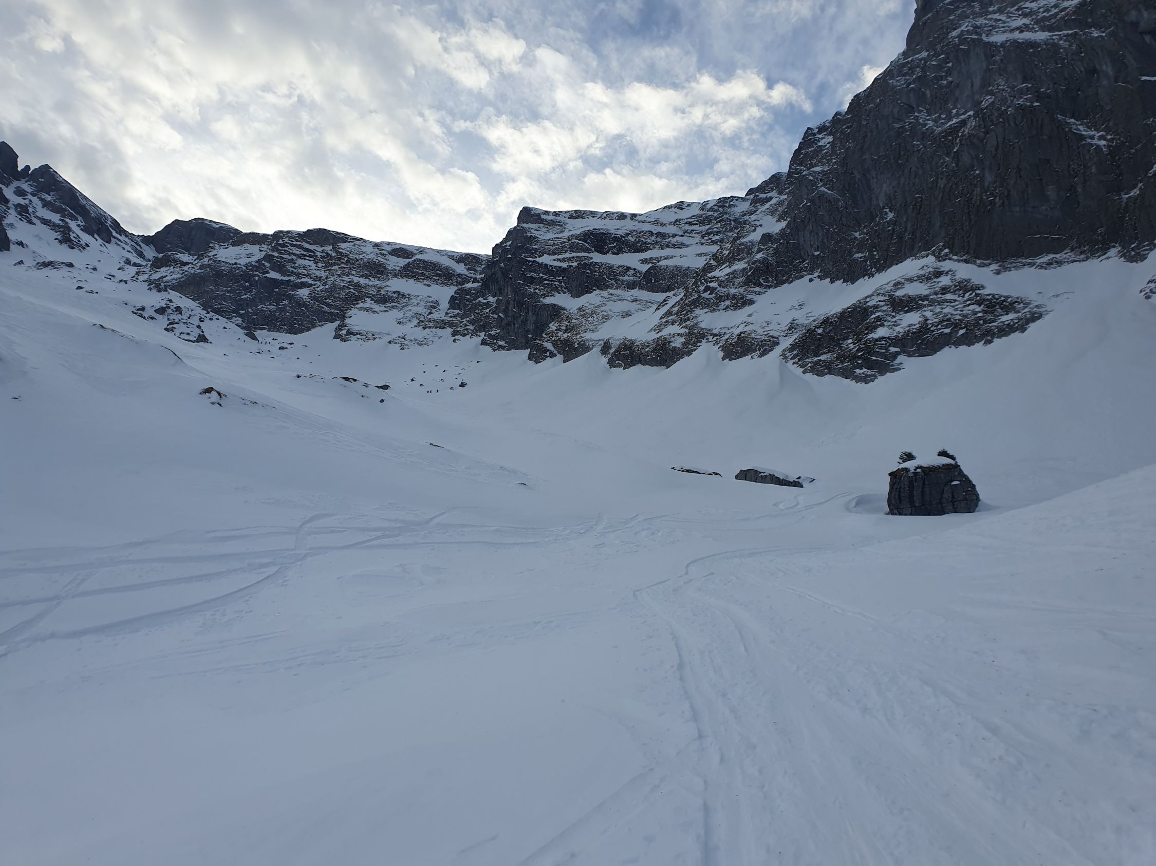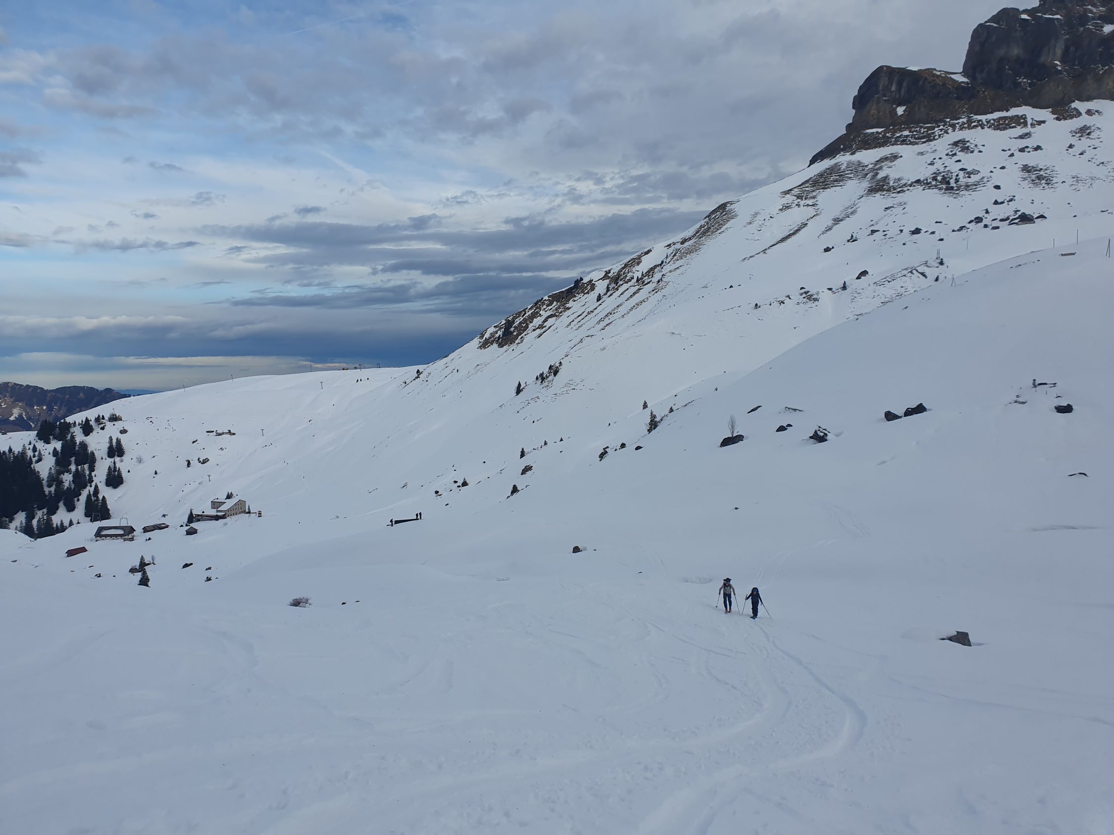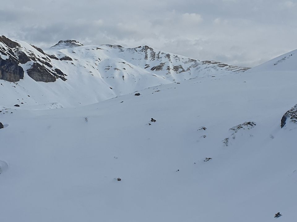 Heute nur bis Fierlegi gegangen, da etwas angeschlagen. Schnee hats ab Bannalp genug. Natürlich überall ragen Felsblöcke aus dem Schnee. Aufstieg soweit gut. Spur teils rutschig.