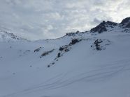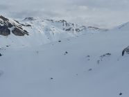 Abfahrt war dann ziemlich mühsam. Trotz Schattenhang wechslend zwischen sehr schweren "Pulver", windgepresst, Bruchharst usw. Kein Vergnügen zum Abfahren.