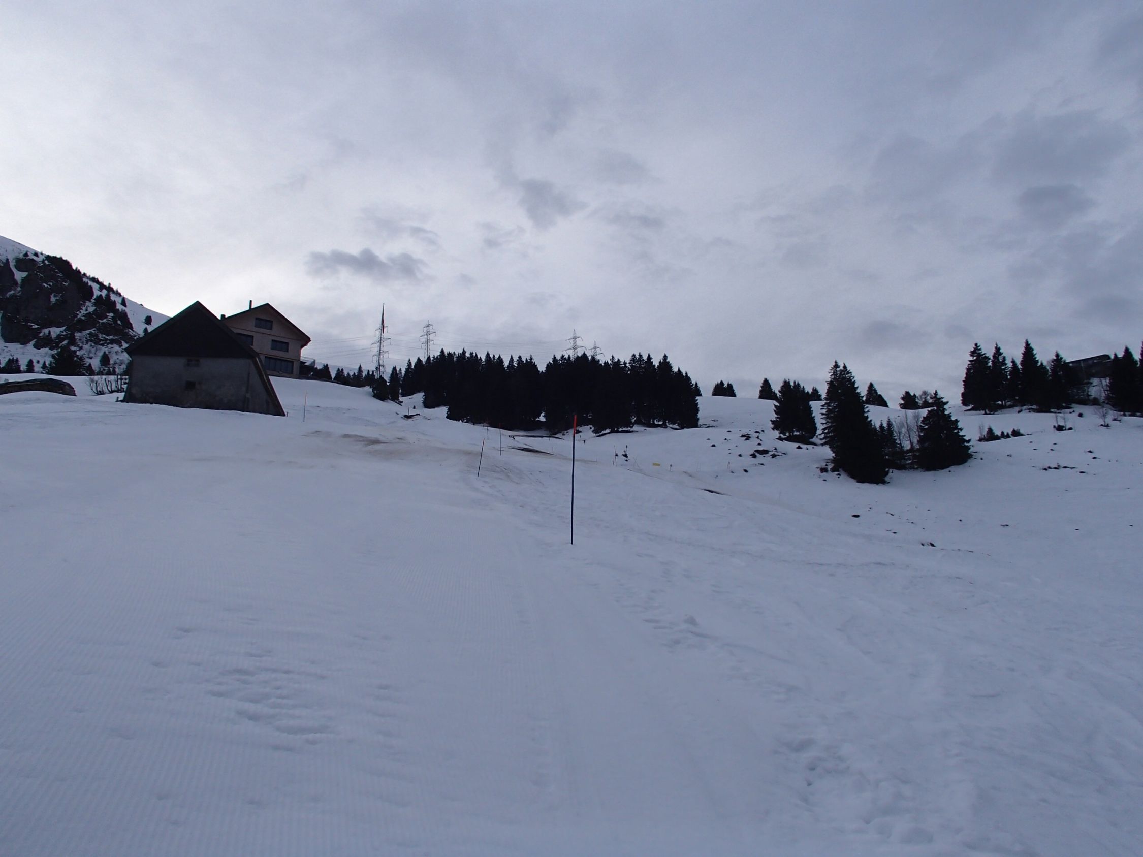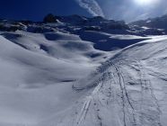 In der Abfahrt noch einige kleinere Pulverschneepassagen gefunden. Gegenaufstieg zum Skilift und dann die Skipiste runter gefahren.