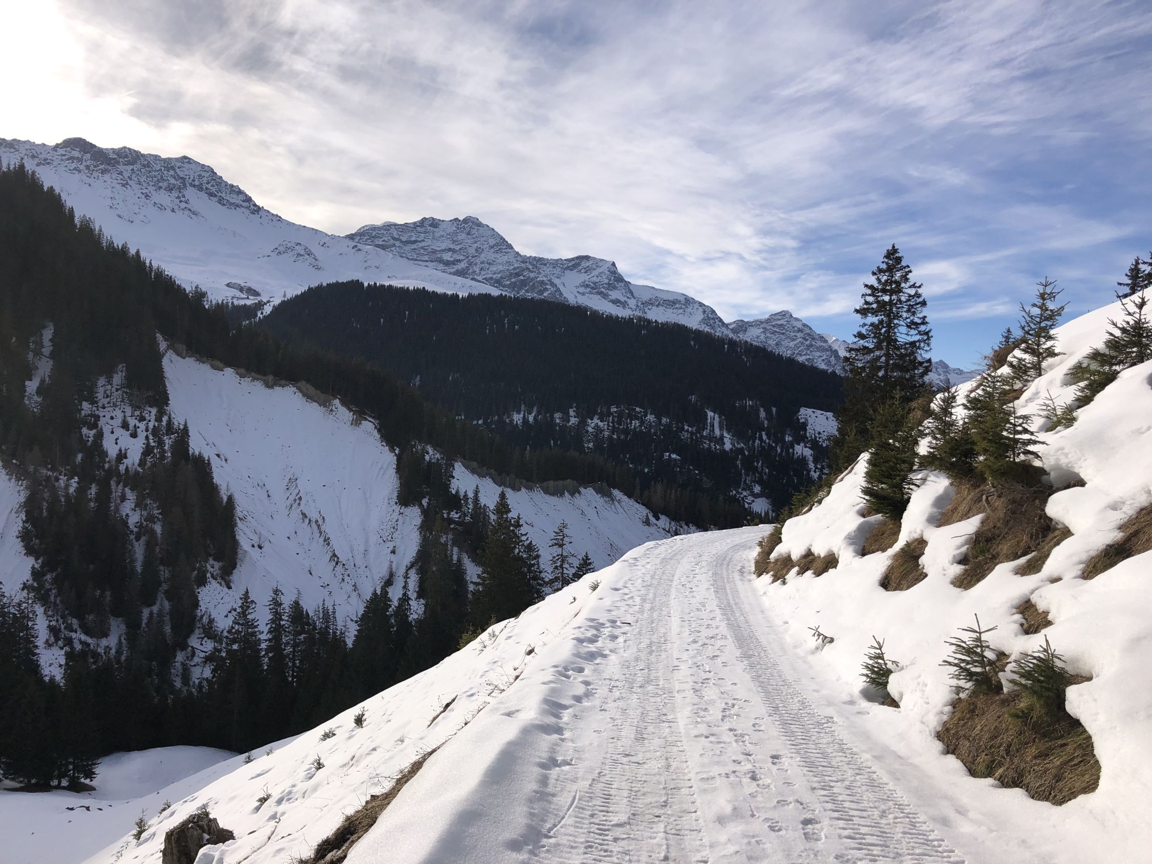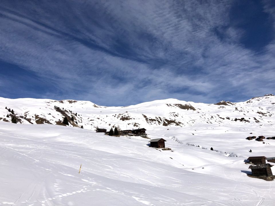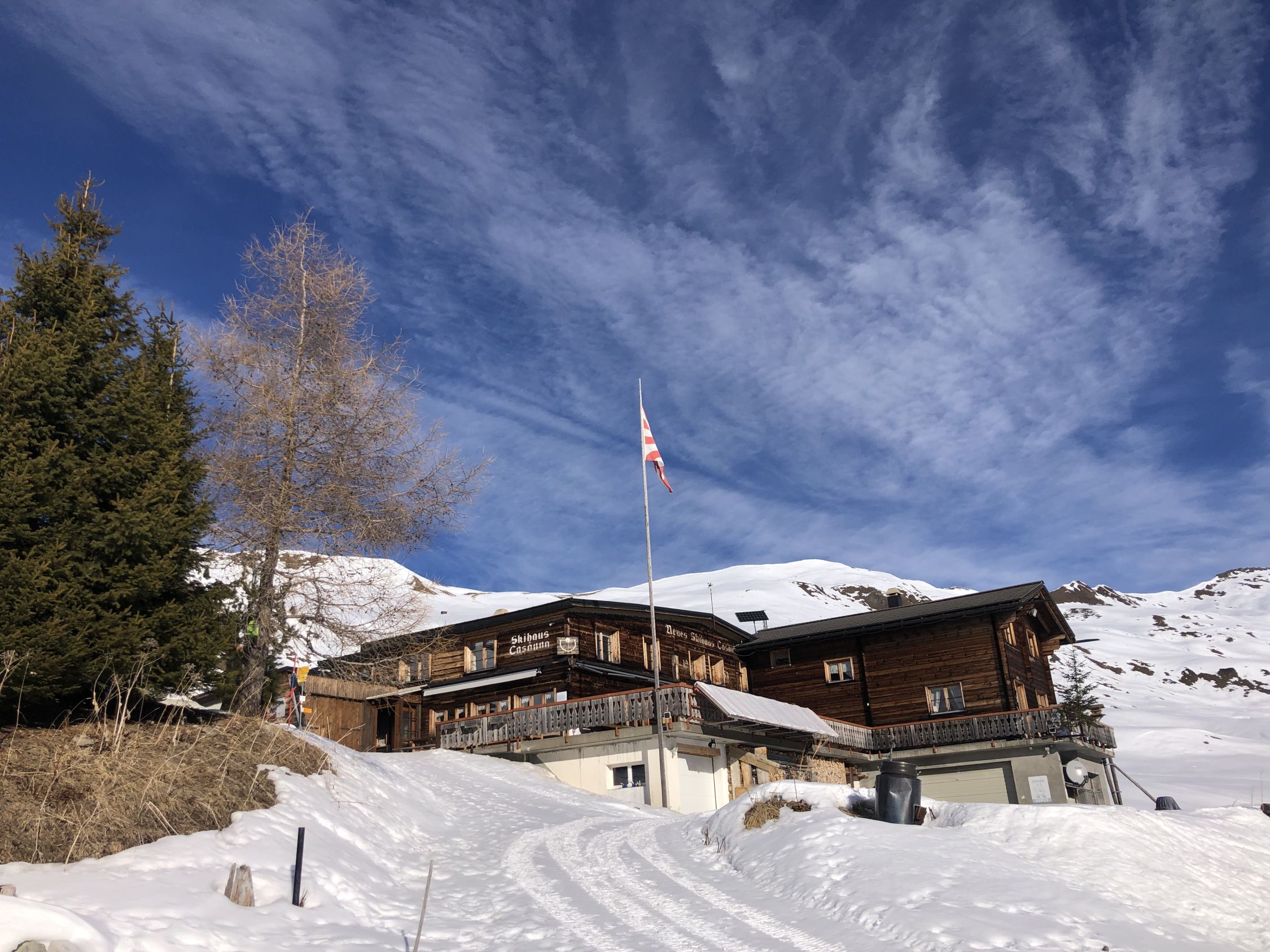 Auf dem Strässchen von Langwies von Pt. 1507 bis zu den Gallerien teilweise sehr eisig, Blankeis, teils aper. Etwa 6x kurz Ski tragen. Über die Hänge zum Skihaus Casanna gute Verhältnisse. Gemütliche Einkehr auf der wunderbaren Sonnenterrasse vom Skihaus Casanna.