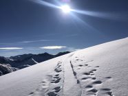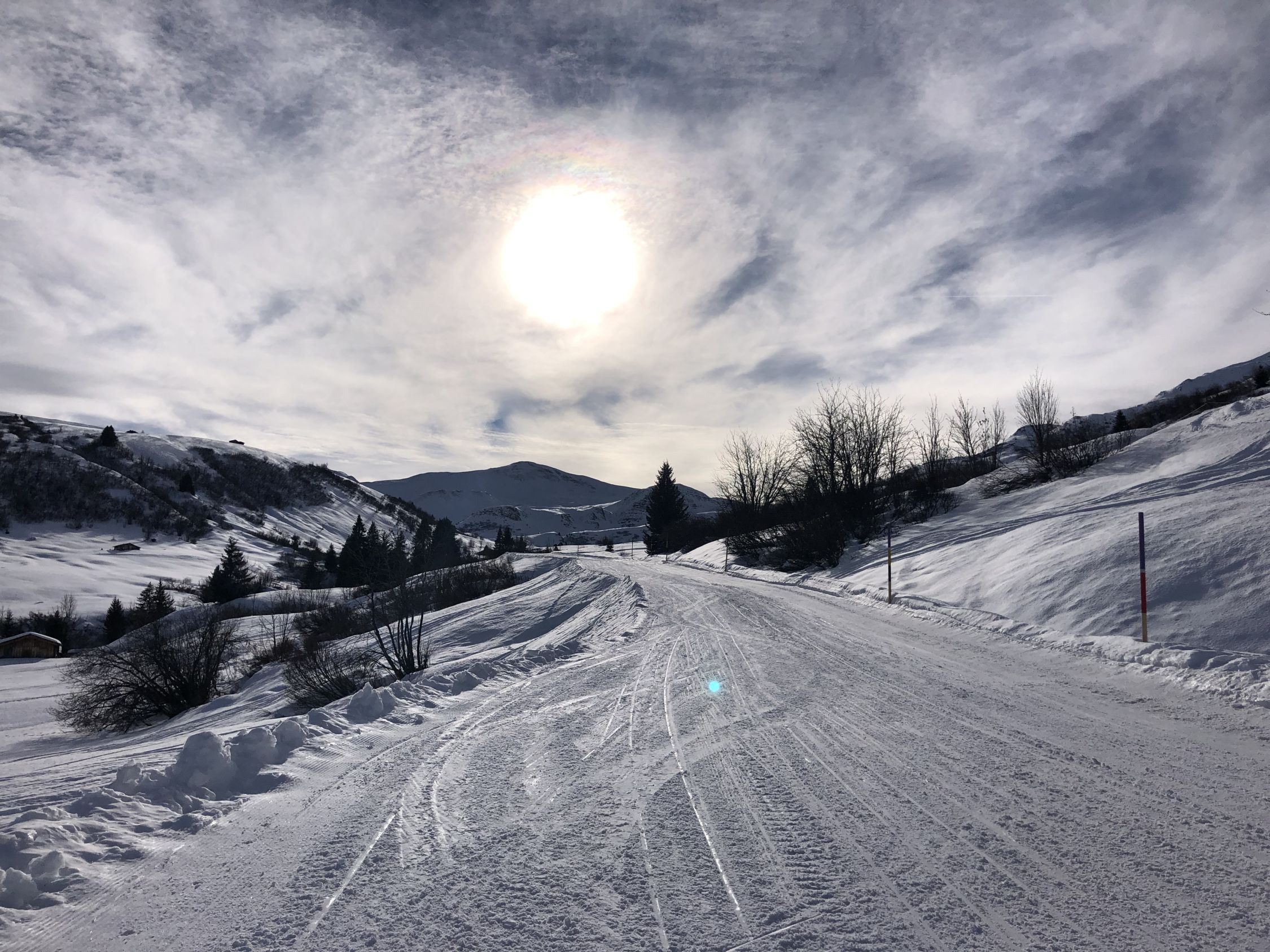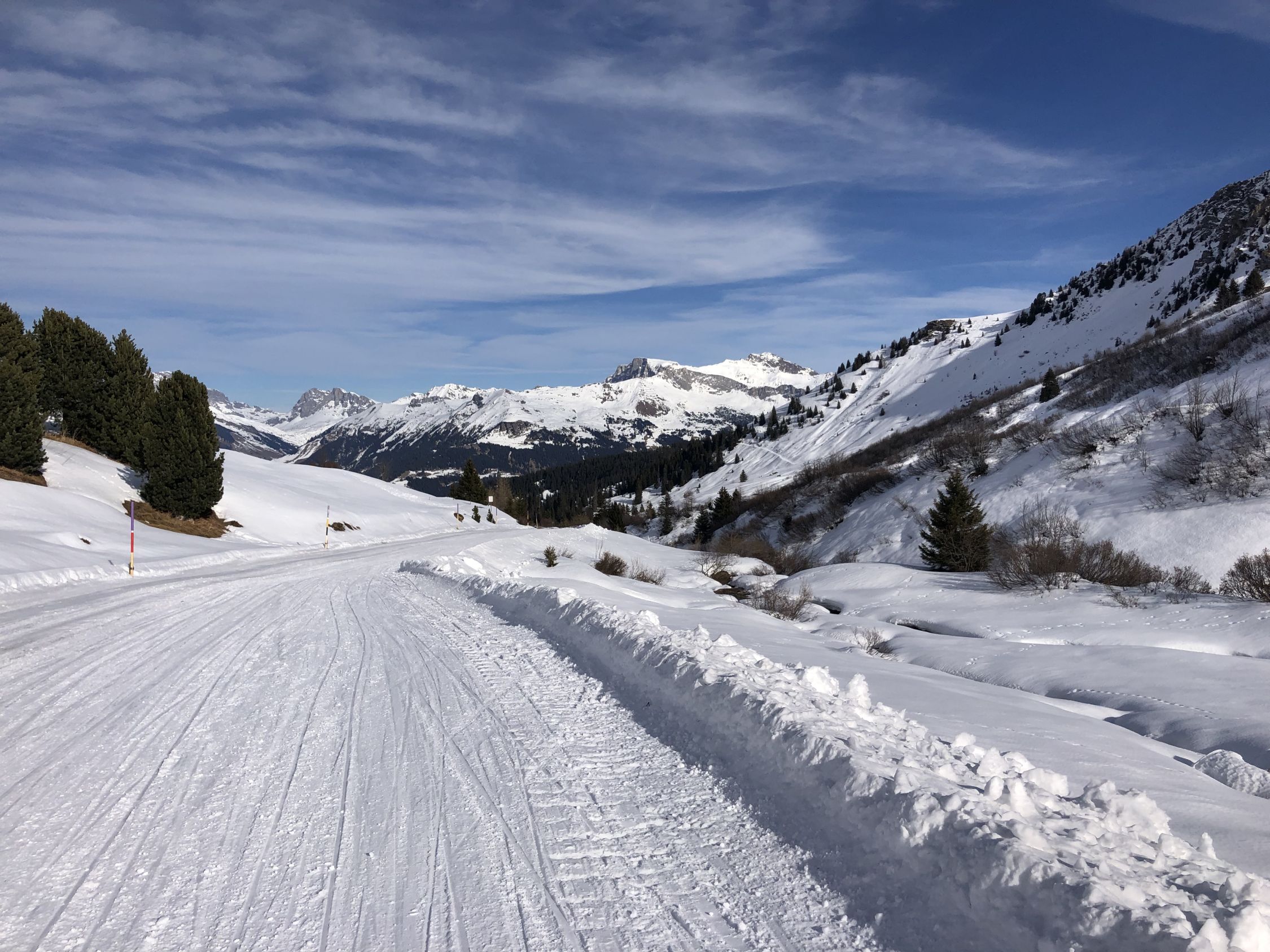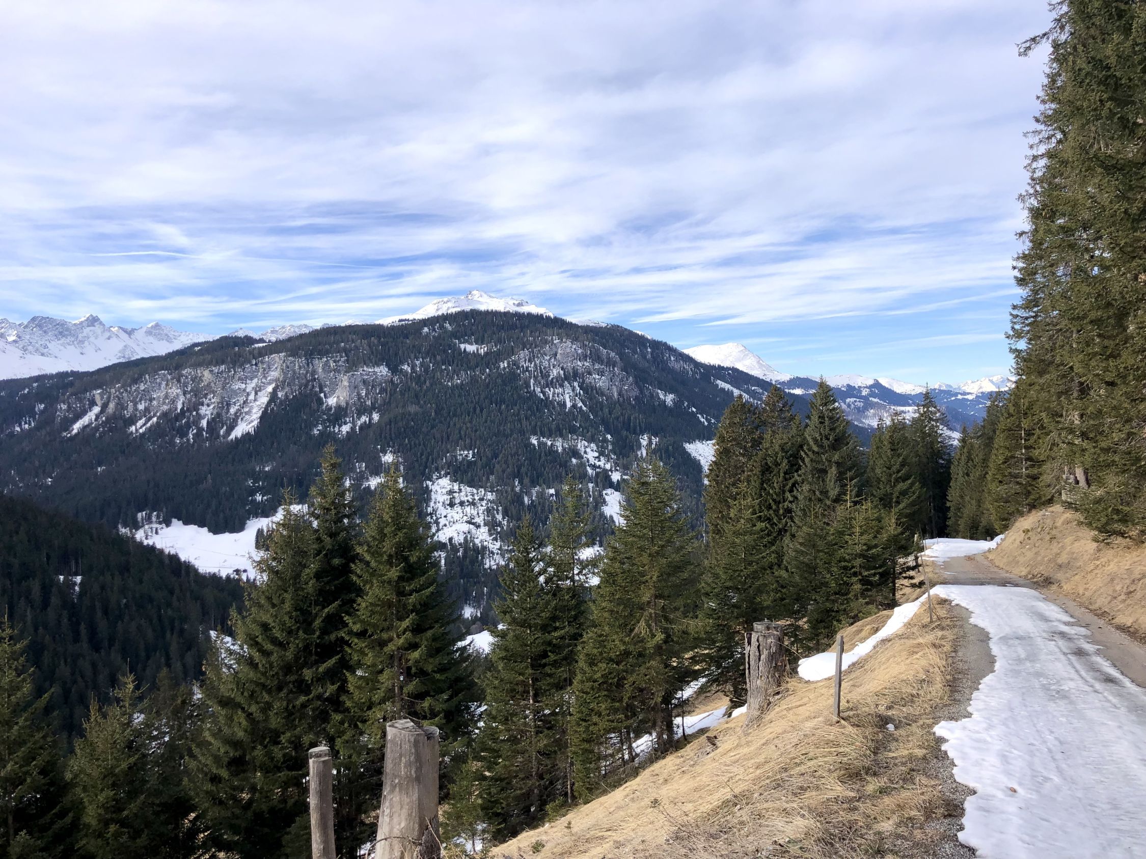Auf dem Strässchen von Langwies von Pt. 1507 bis zu den Gallerien teilweise sehr eisig, Blankeis, teils aper. Etwa 6x kurz Ski tragen. Über die Hänge zum Skihaus Casanna gute Verhältnisse. Gemütliche Einkehr auf der wunderbaren Sonnenterrasse vom Skihaus Casanna.