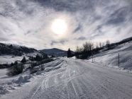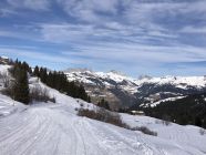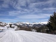 Abfahrt nach Fideriser Heuberge teils hart, in Mulden Pulver, auf der Schlittelbahn bis Fideris Dorf noch knapp möglich, ganz unten eisig, Fahrrillen und ein paar Steine.