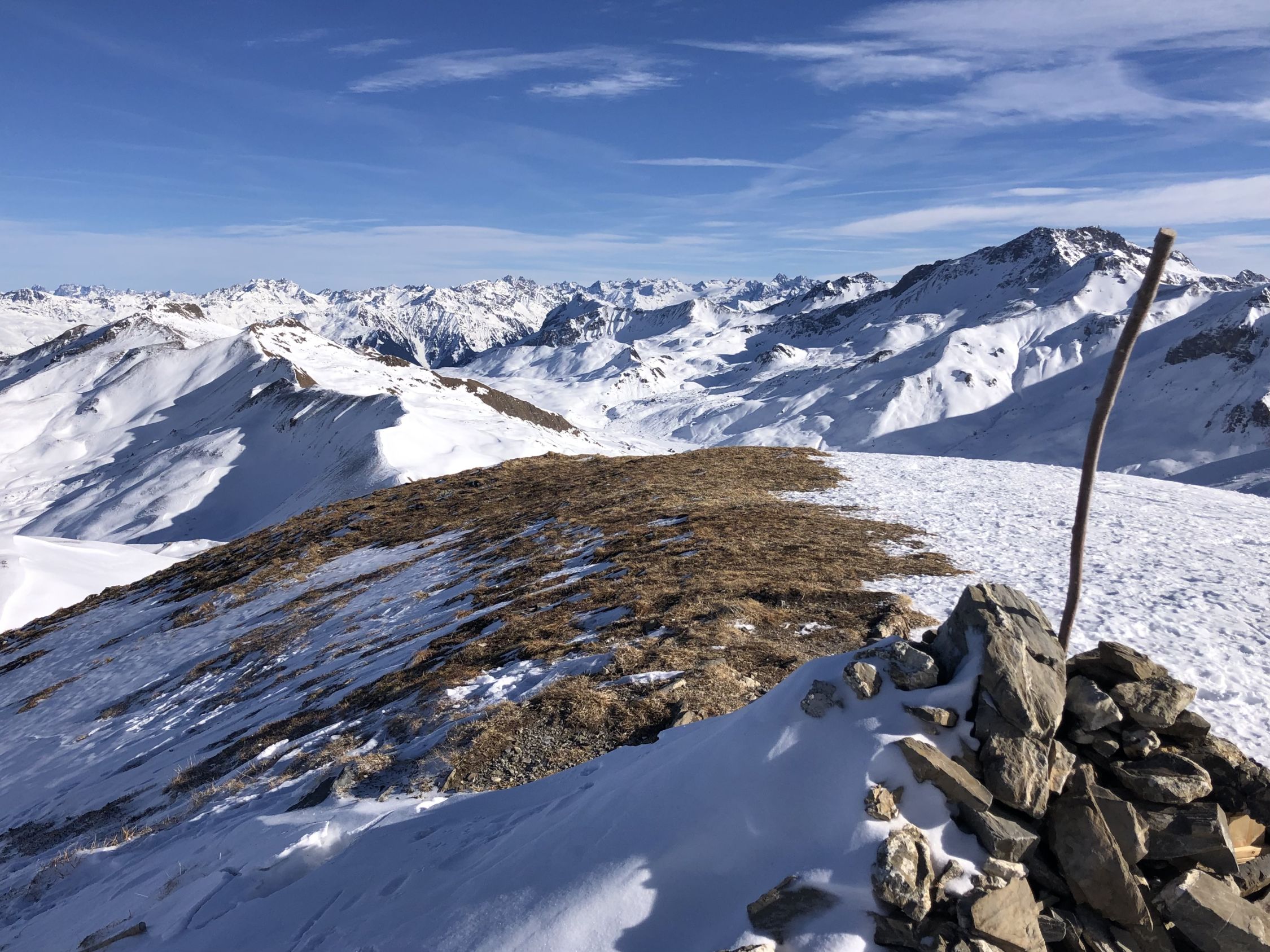 Oben Grate und Gipfel alles abgeblasen, alle Gipfelgrate mit Gras und Steinen.