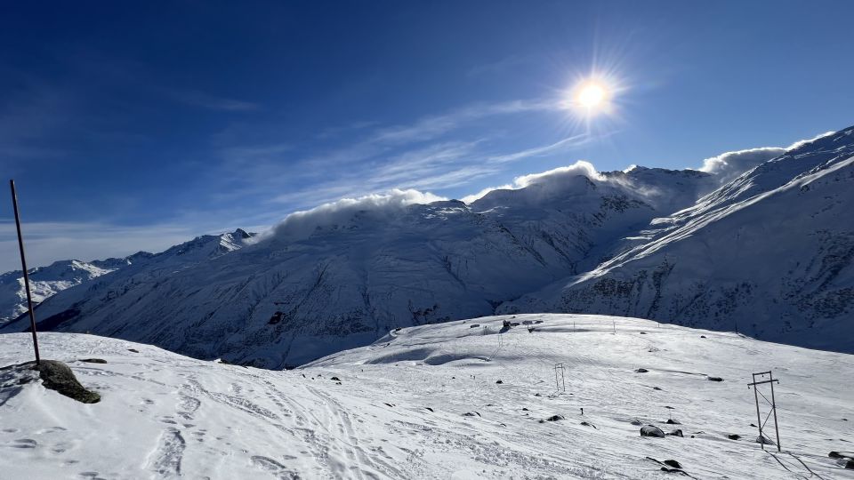 Auf der ganzen Route liegt genügend Schnee, dieser ist aber mehrheitlich hart und/oder stark verfahren. Fazit: Tolle Landschaft und Aussicht, viel Sonne, Abfahrt eher mässig.