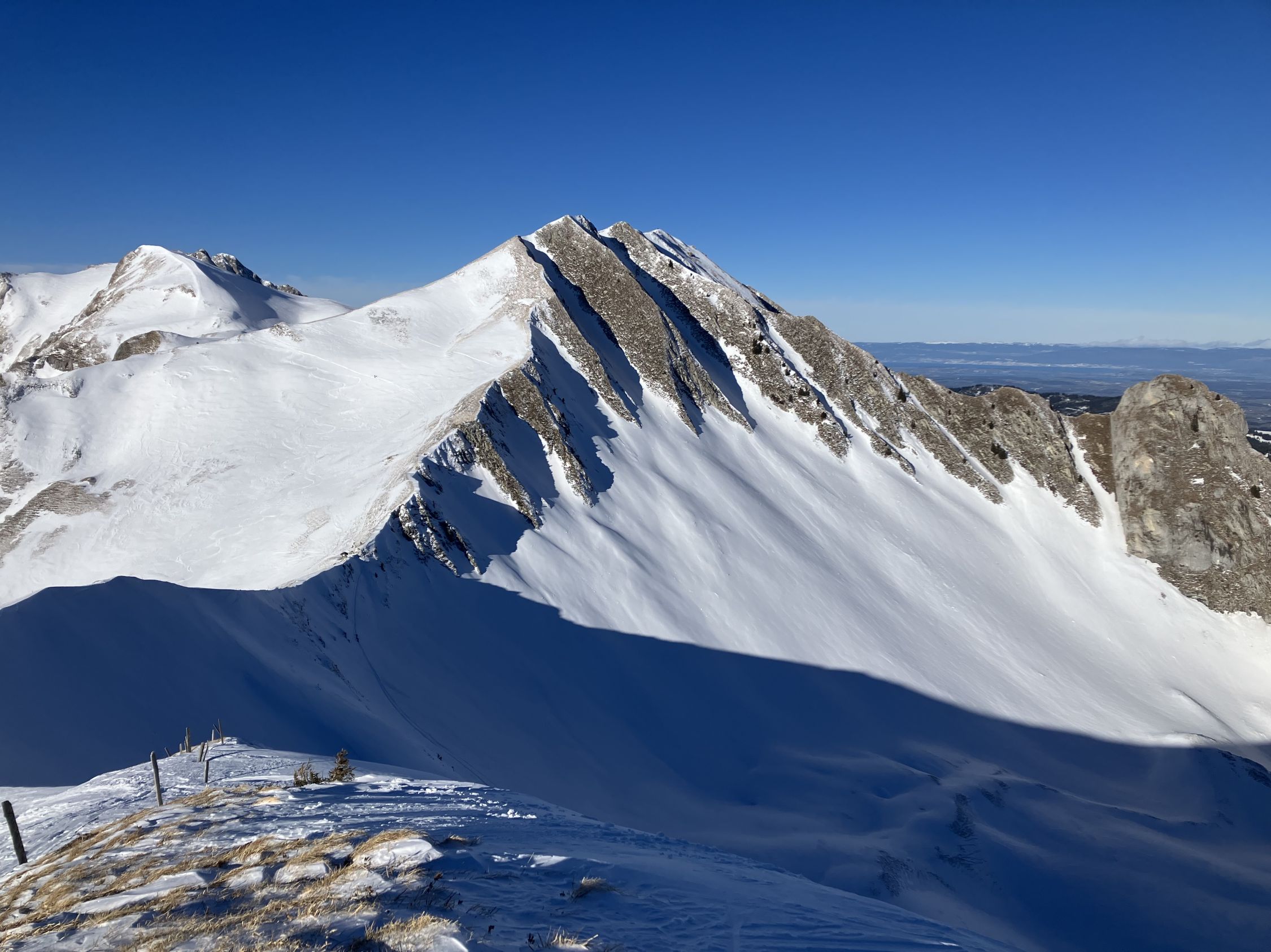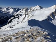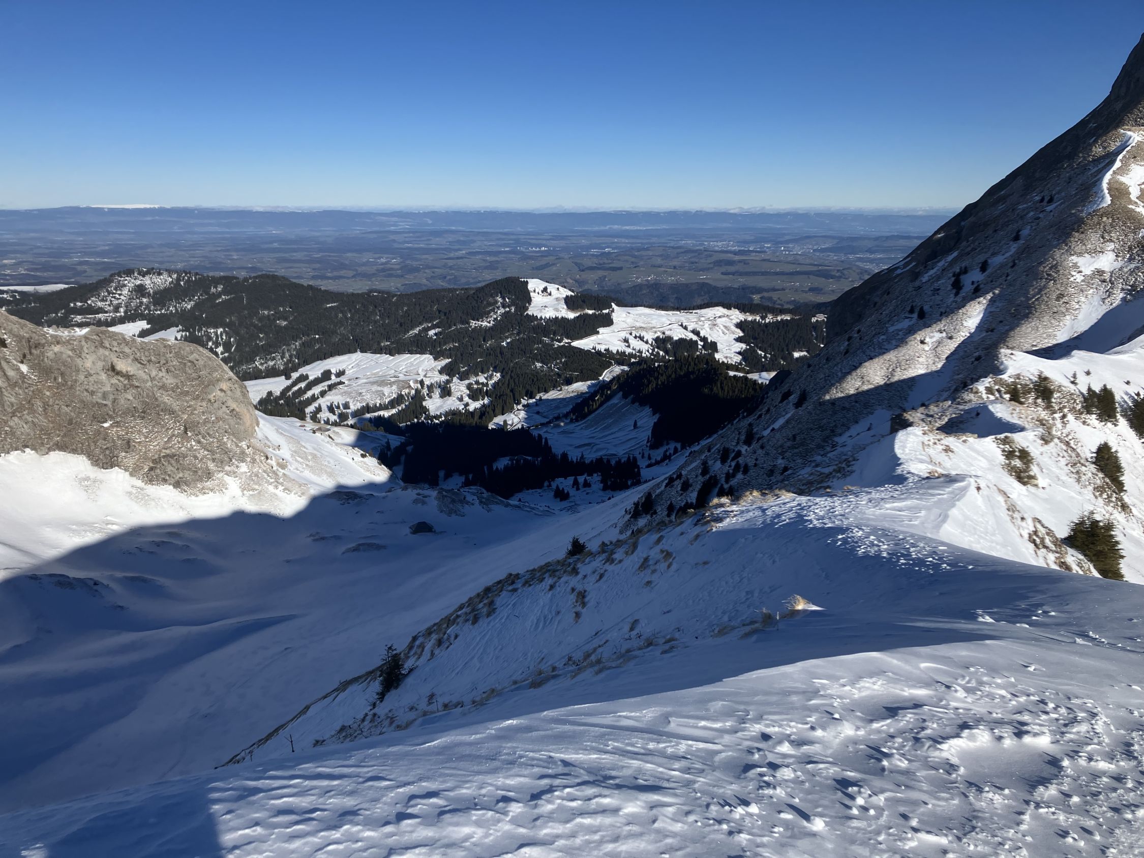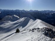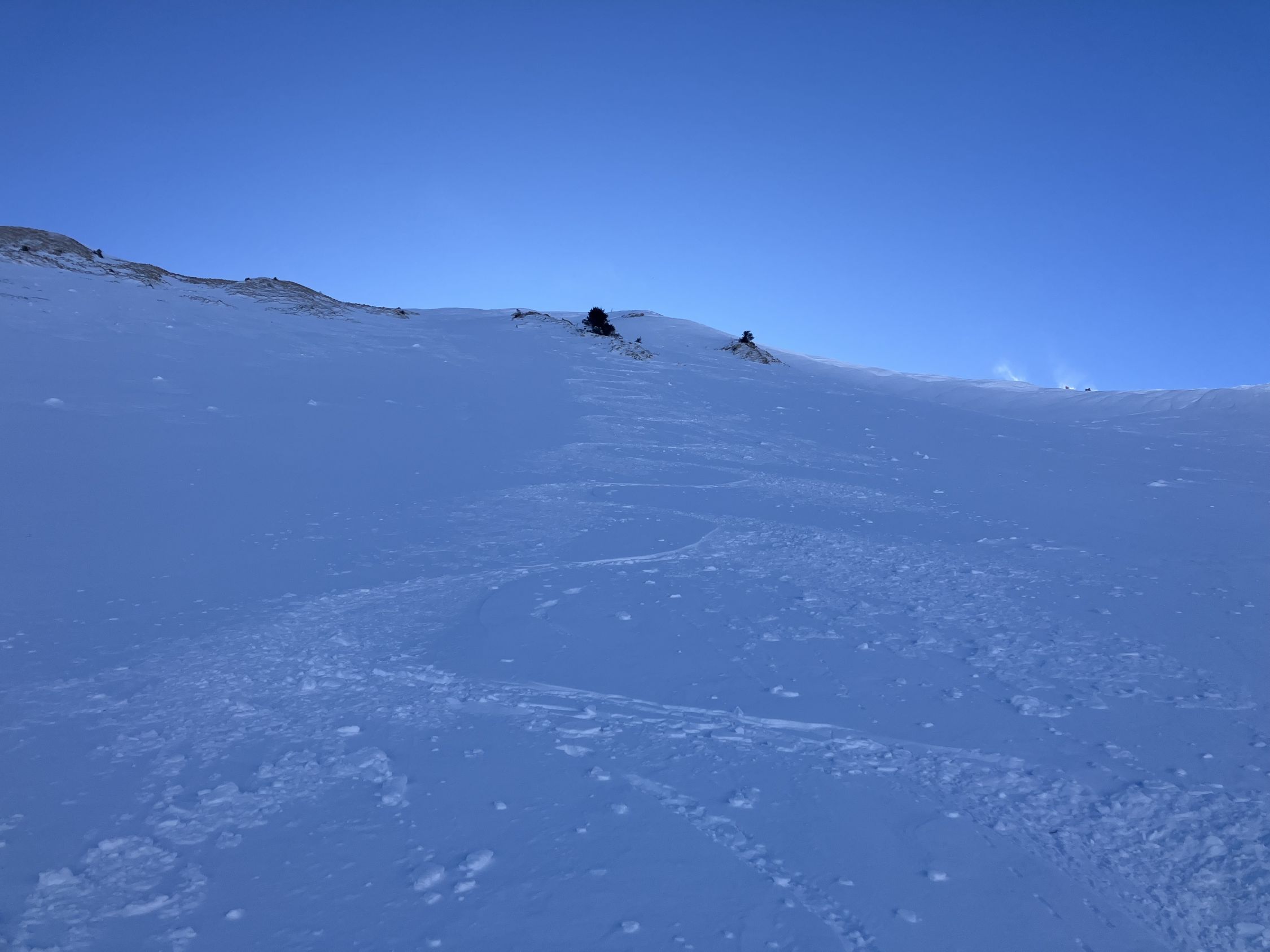 Abfahrt direckt vom Gipfel in Pulfer und Hartschnee, aber schon besser als Freitags.