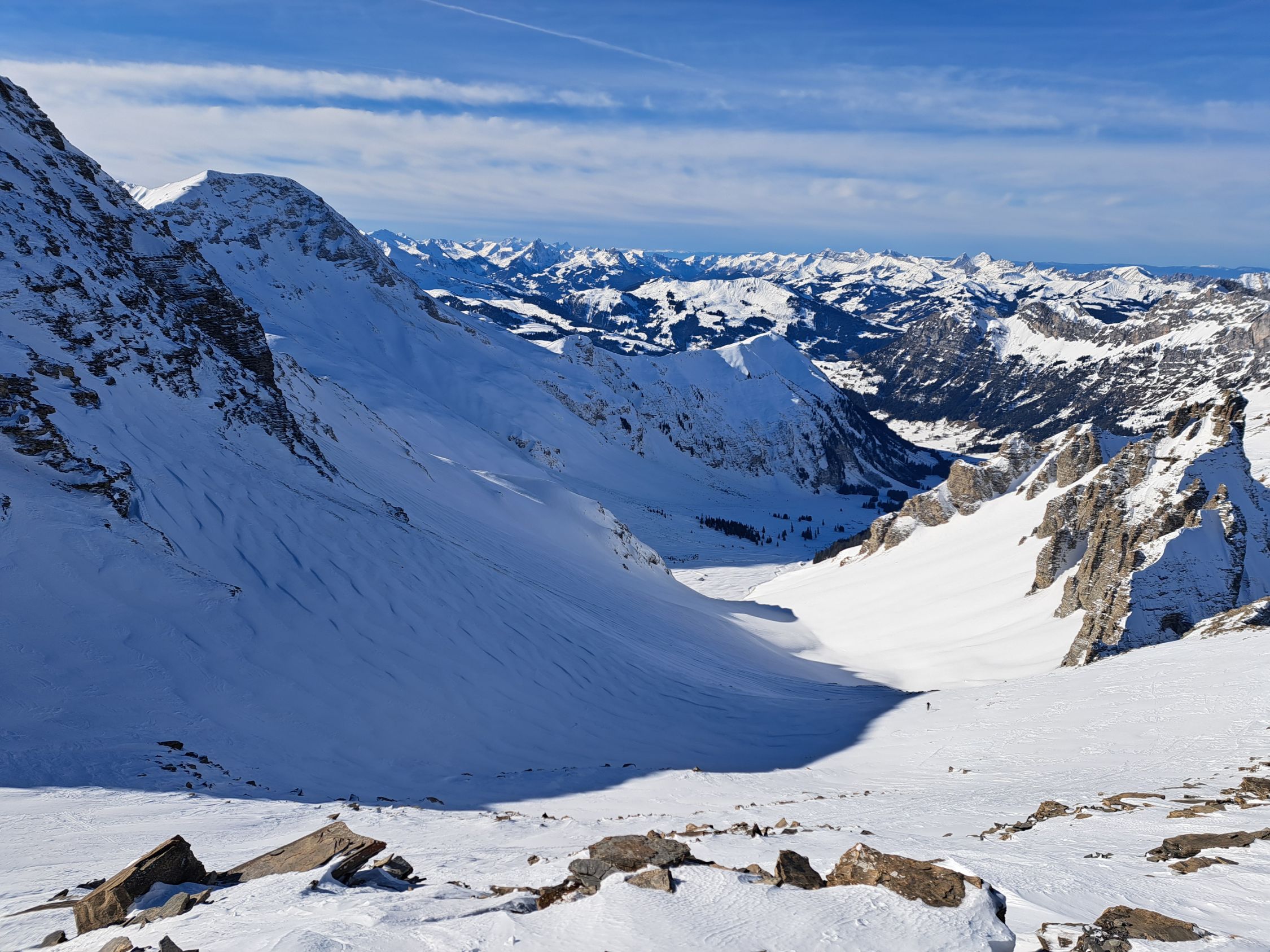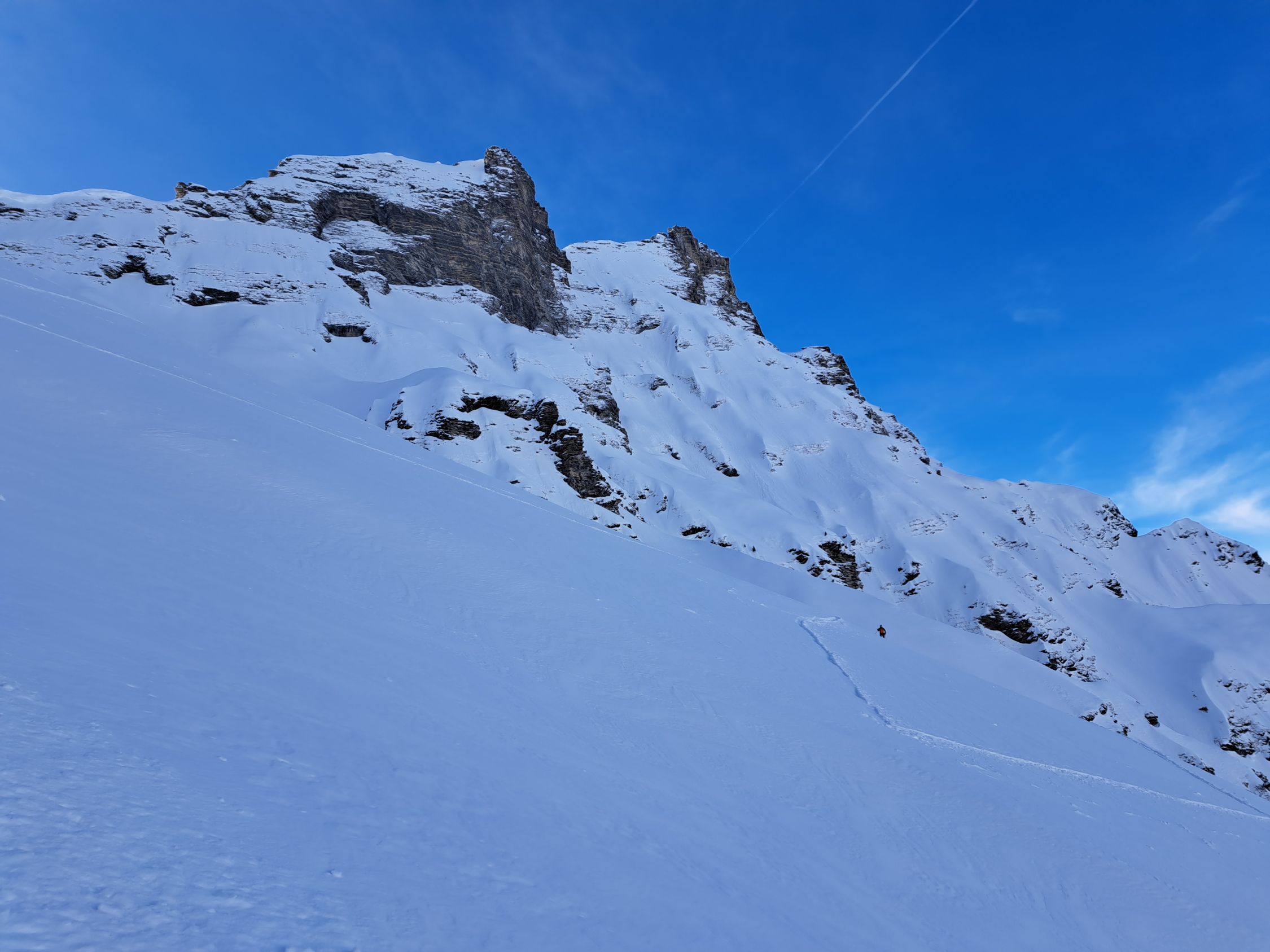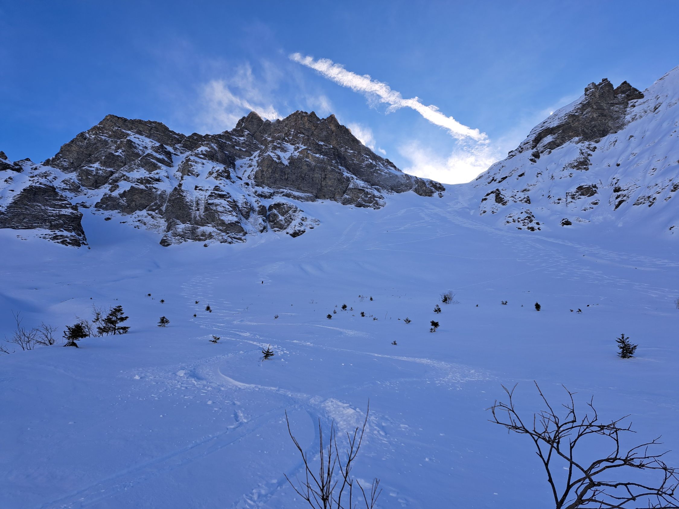 Im Steinbodenhang bis Sattel 2359m dann sogar 10-20 cm Pulverschnee.