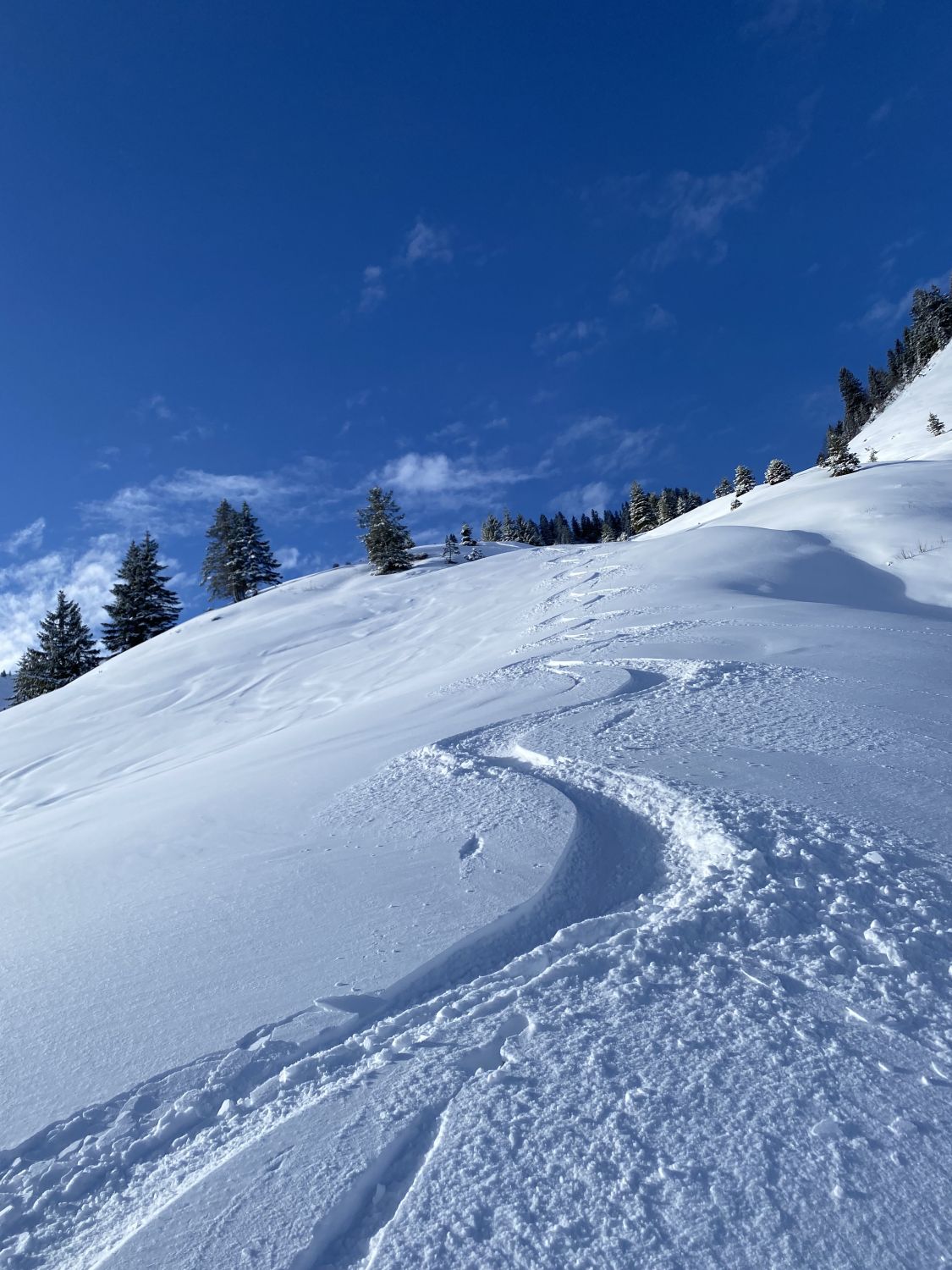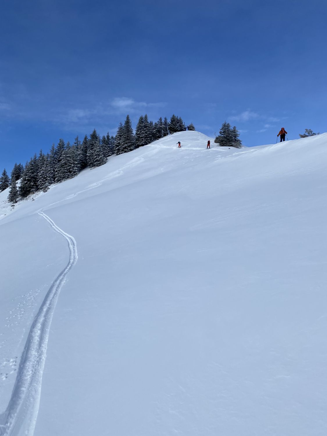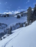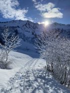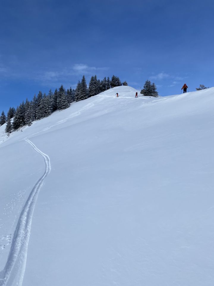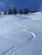 Bereits ab Parkplatz fand sich heute eine 10-15 cm Neuschneedecke. Frau Holle hatte über Nacht alles in ein Wintermärchen verzaubert. Winziger Haken sind nur 2-3 kurze Tragepassagen im Wald Richtung Sackalpe. Aufstieg problemlos im trockenen Pulver. Ab Obere Frutzalpe gespurt, da Gruppe vor mir eingeholt. Sicht leider beim Aufstieg schlecht. Wetter besserte sich dann rasch und Abfahrt war wirklich ein Genuss.