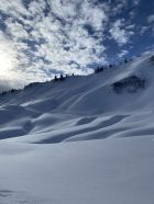 Hohe Tagestemperaturen und Sonne setzen dem Neuschnee schnell zu. Wahrscheinlich harschiger in den nächsten 2-3 Tagen.