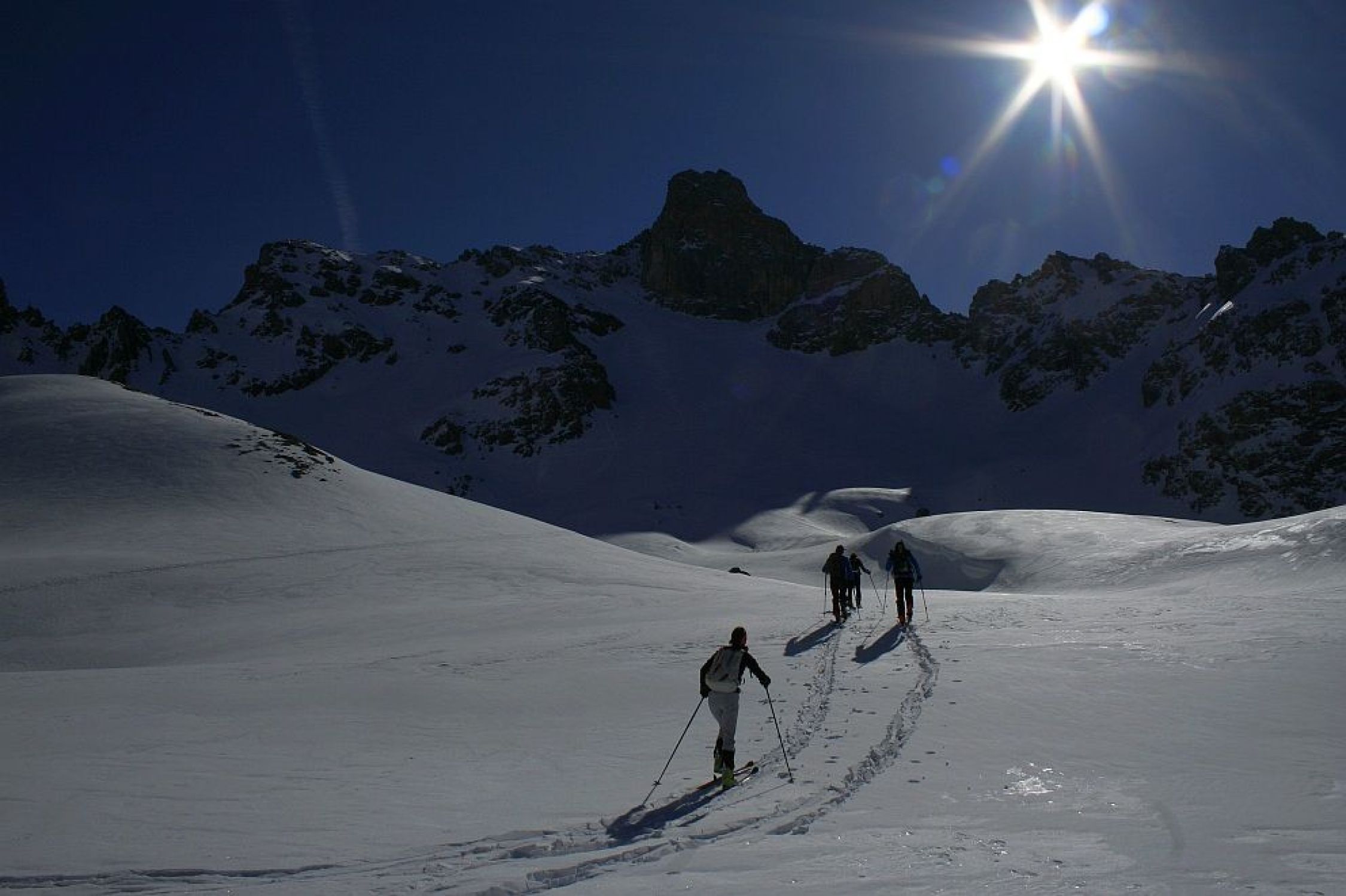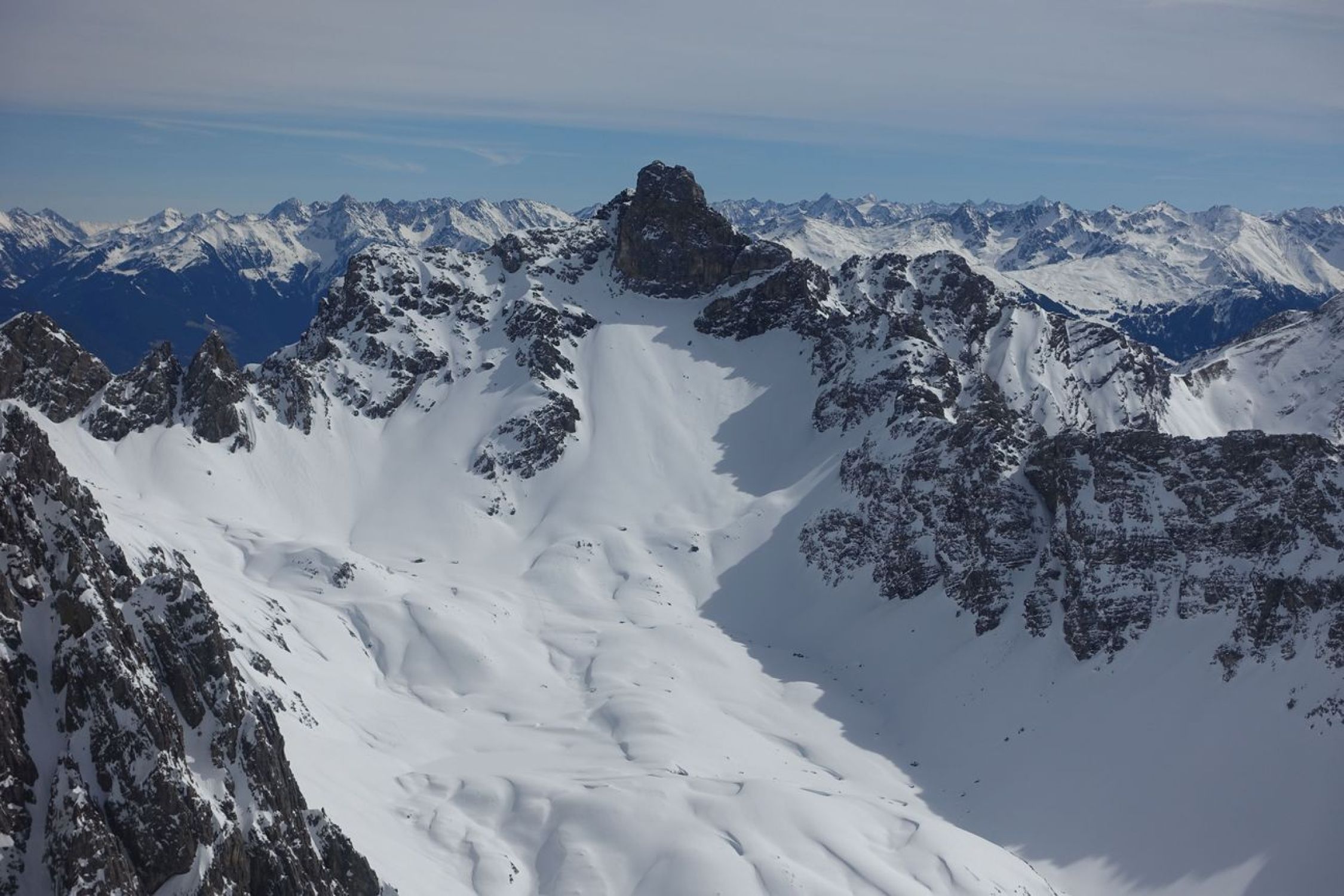 So etwa die Runde Boden, Steinkar, Verborgene Gratscharte, Larsenn, Schlenkerspitze, Boden, die man genußvoller in zwei Tagen durchführt, wenn man einige schöne Hänge und Gipfel mitnehmen möchte.