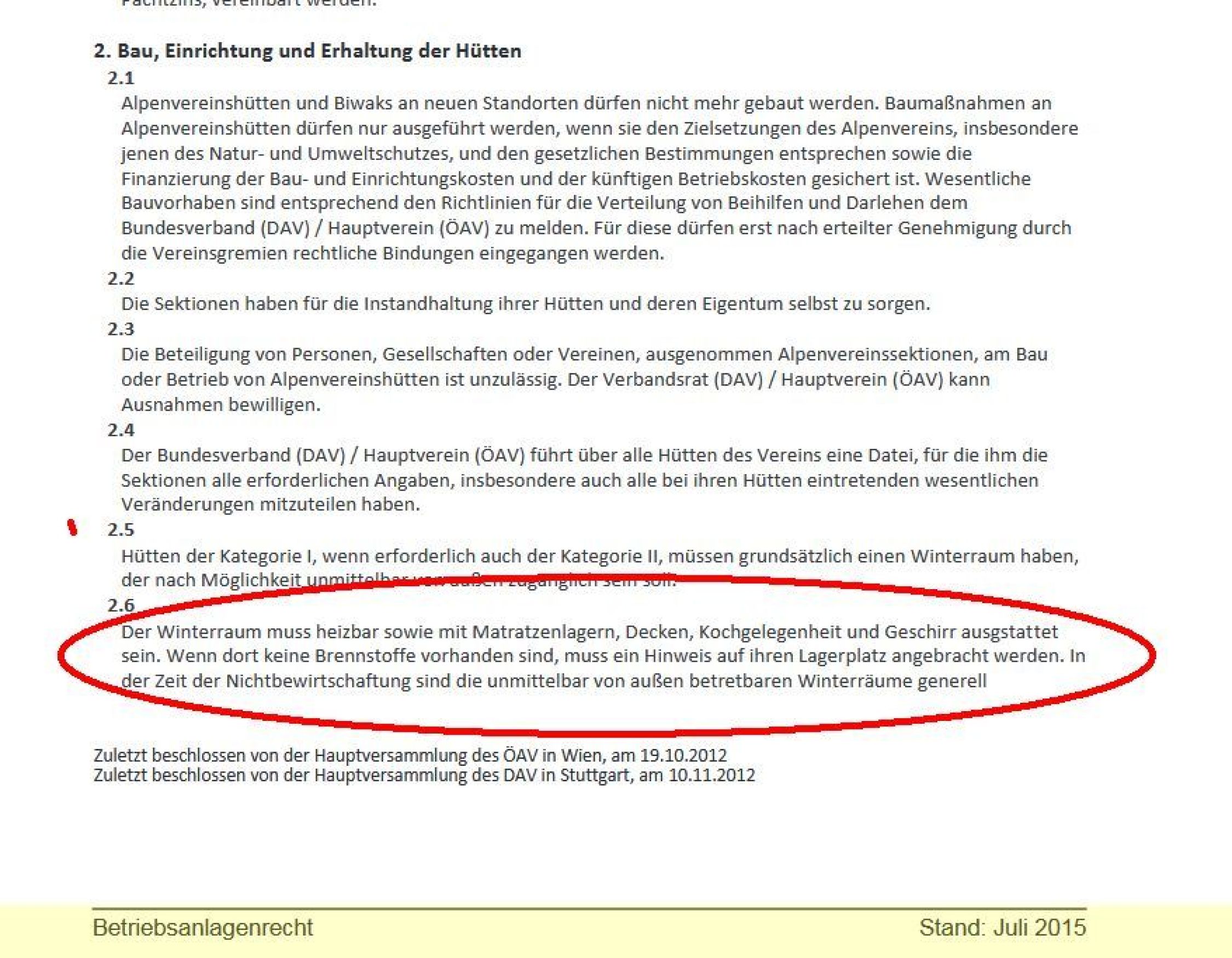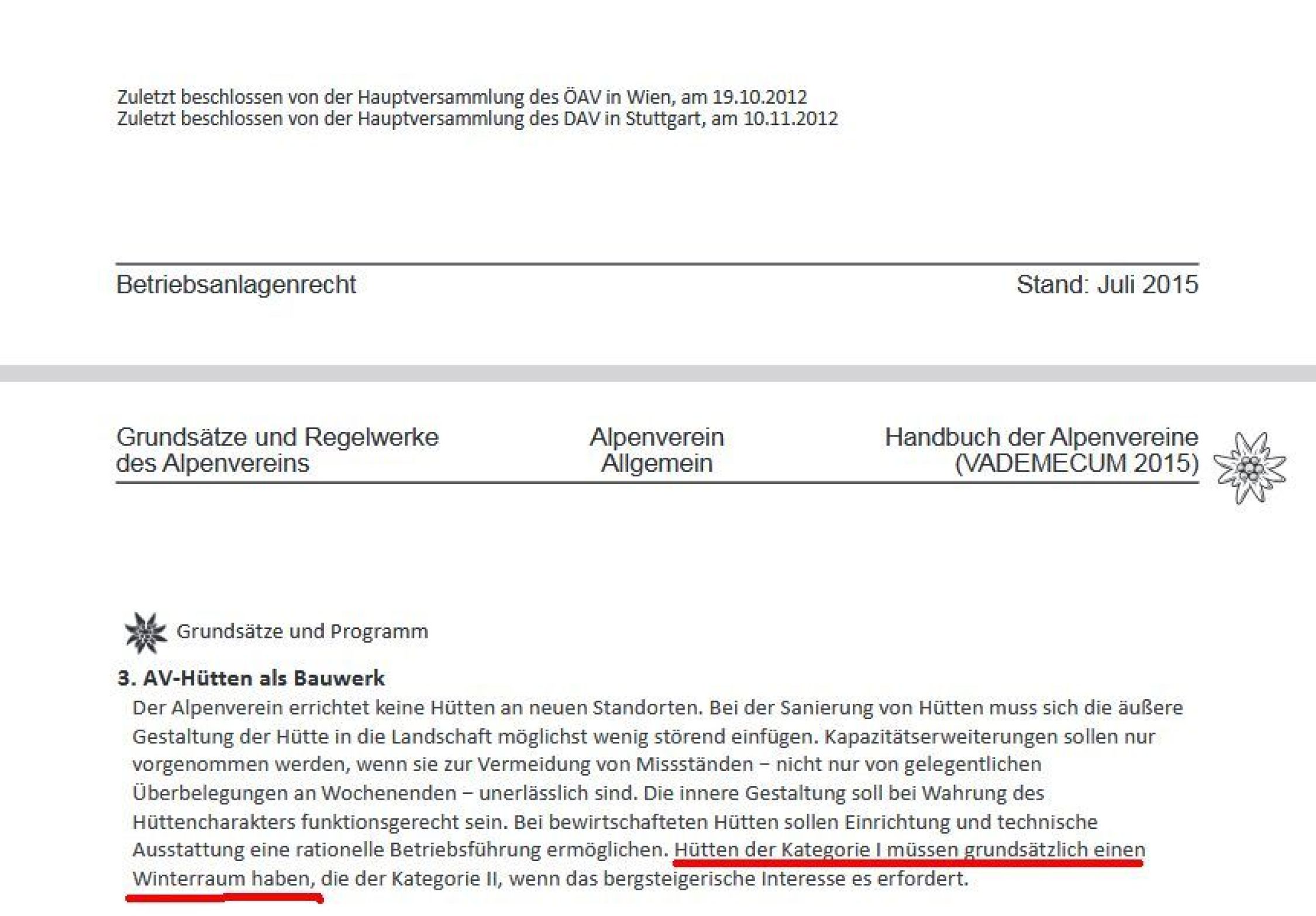 Laut den gemeinsamen Statuten von DAV und OEAV muss eine Hütte über einen beheizbaren Winterraum verfügen.