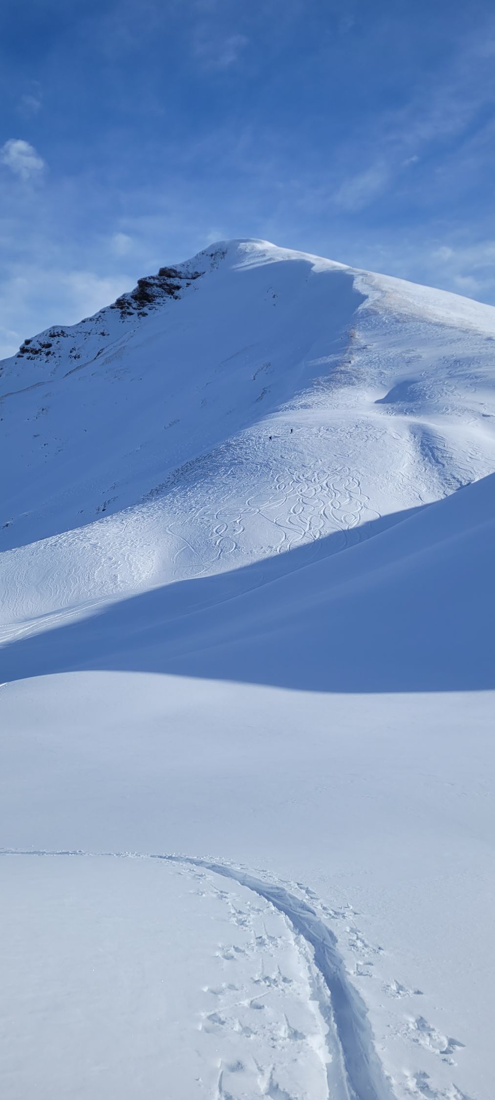 Wir haben den Gipfel zugunsten des besseren Schneesb und Wiederaufstieg ausgelassen