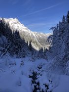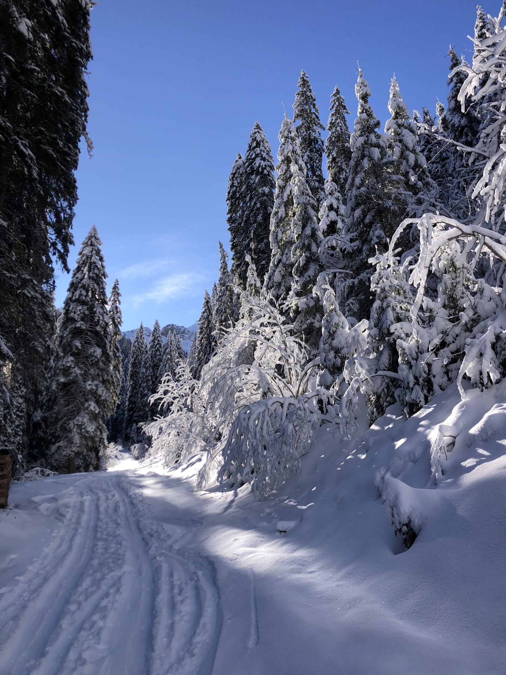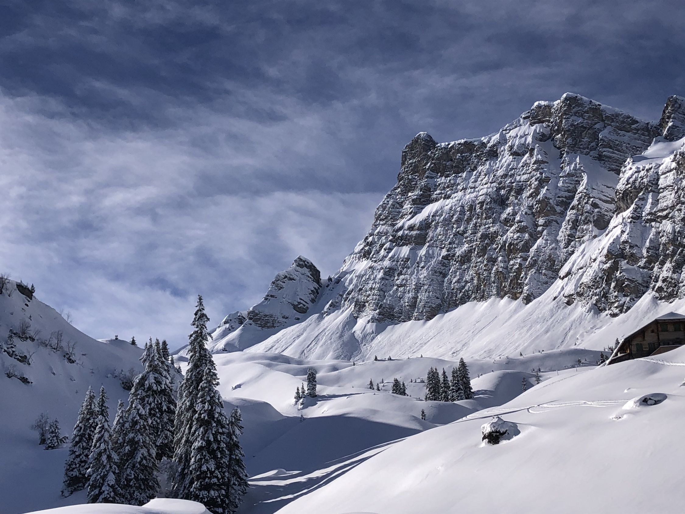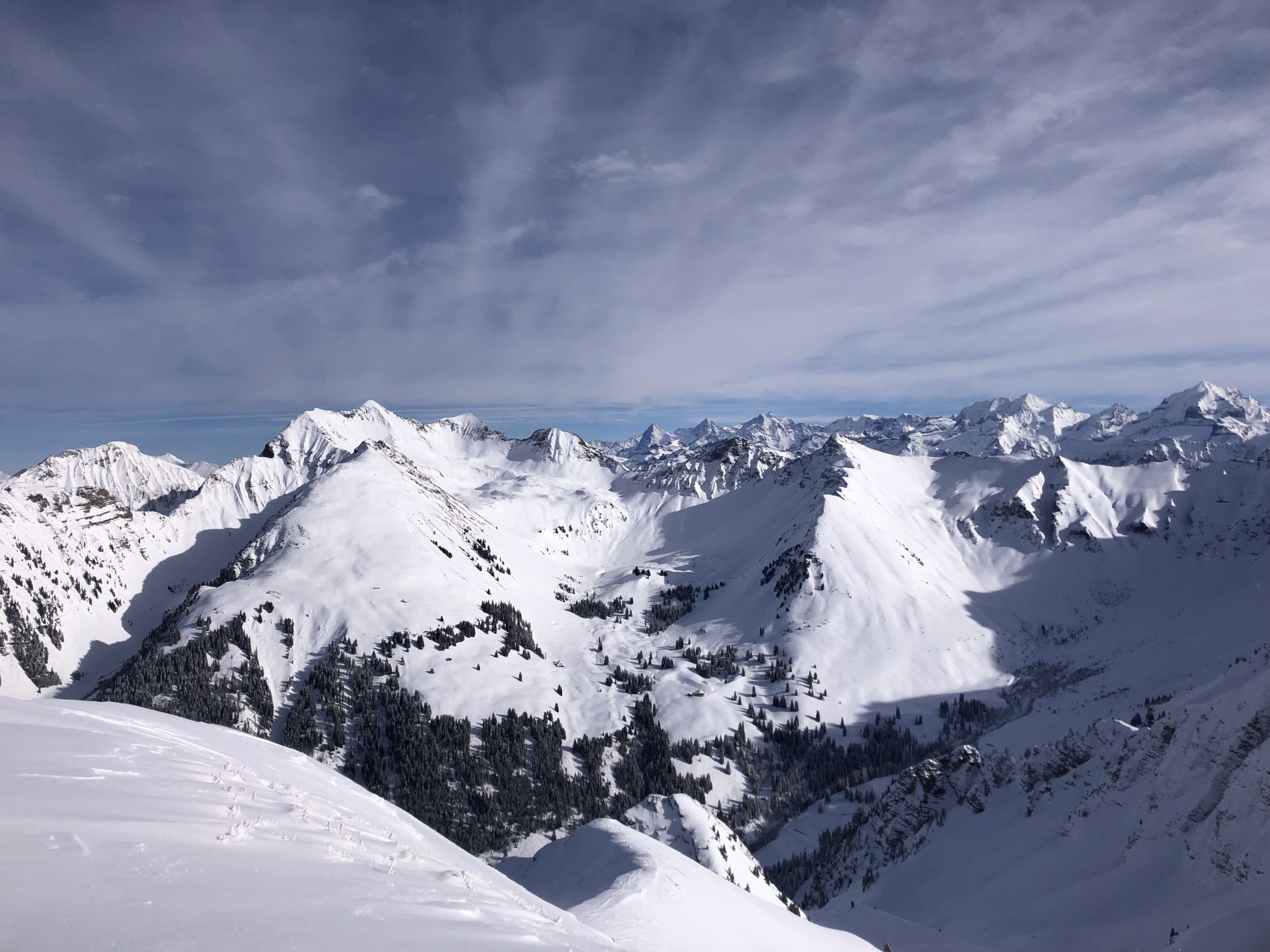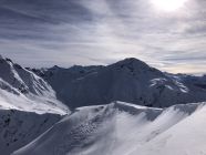 Später Start heute 10.15, ab Hotel Spillgerte, dafür Aufstieg mehrheitlich im Sonnenschein. Strasse ab Parkplatz top eingeschneit in alle Richtungen. Es hat oberhalb 1450m ca. 30cm Pulver gegeben. Der Gipfelhang wie erwartet windbearbeitet, Presspulver, stellenweise hart und eisig. Trotzdem gut fahrbar. Unterhalb Grimmifurggi dann top Pulver, so wie wir es lieben, locker flockig, ohne Windeinfluss.