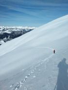 Insgesamt Gute Verhältnisse, erlebniswert top. Keine Tragepassagen auf der Strasse. Ab dem schiessplatz zunehmend mehr Neuschnee. Waldpassagen sehr schön, oben auch jedoch teilweise etwas gedeckelt, aber immer wieder schöne Passagen gefunden. Letzte 150hm hart / abgeblasen, mit Ski bis direkt unter den Gipfel.