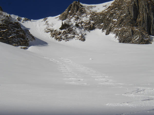 Oberhalb 1400m 30-40cm Pulver Gut.Heute waren die Hänge praktisch unverspurt und es herrschte eine wunderschöne Fernsicht.