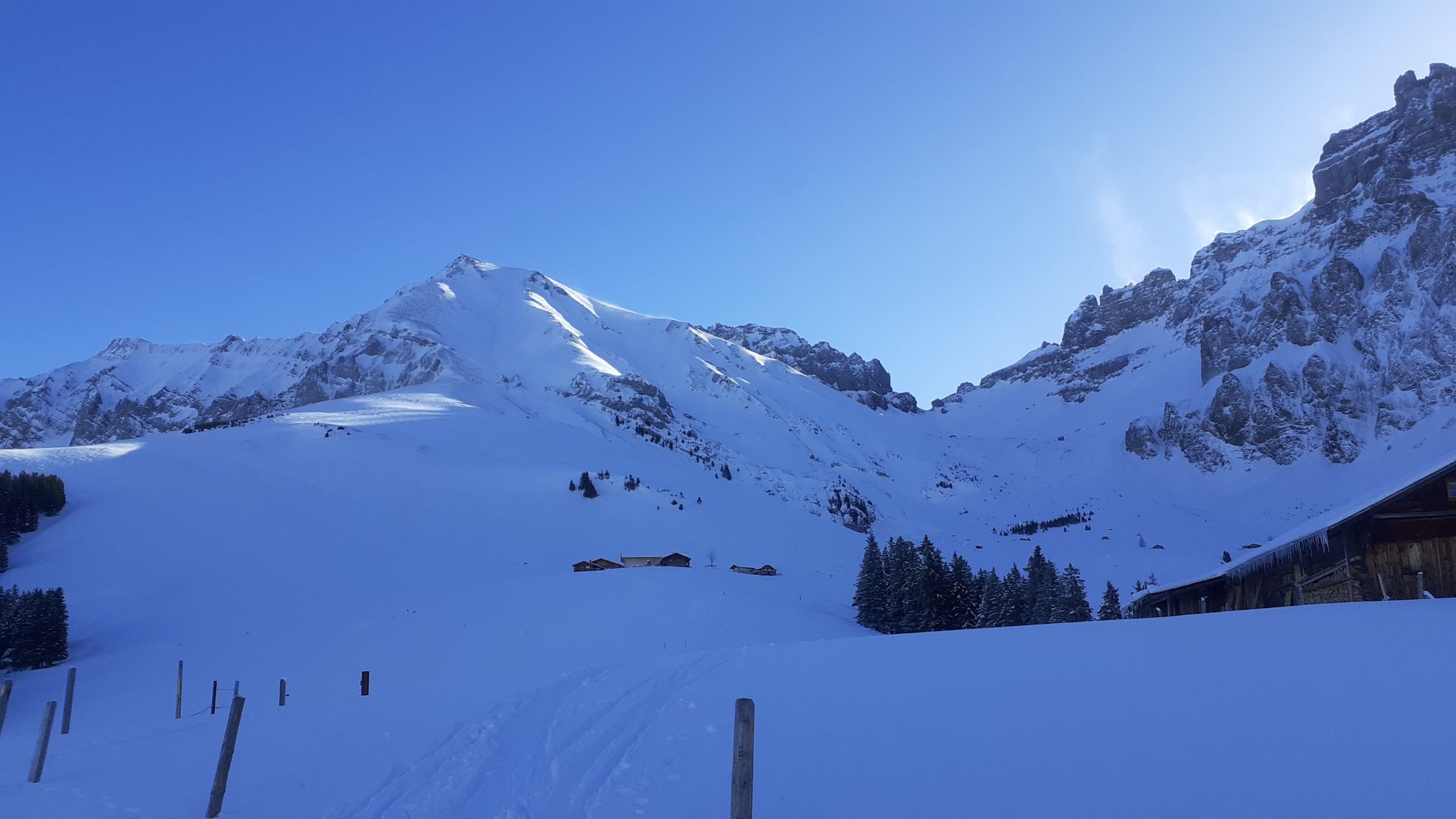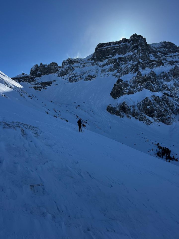 Eigentlich wollten wir auf den Bunderspitz, aber von weitem konnten wir bereits sehen, dass der Schlussgrat abgeblasen war. Deswegen haben wir uns für das Bundergletti entschieden. Auch dort war viel Windeinfluss und der Schnee variabel zwischen Presspulver, hart und Harschdeckel. An windgeschützten Stellen zwischen 2000m und 1700m konnten wir trotzdem einige schöne Schwünge fahren.