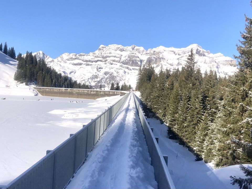 Abfahrt zum Garichti Stausee, teils mit Deckel, teils schöner Pulverschnee. Kein Steinkontakt, genug Schnee.