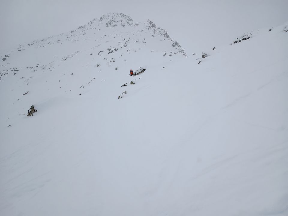 Haben den Gipfel ausgelassen da eingewolkt und ziemlich windig, nebstdem sollte man sicher die doch noch angespannte Lawinensituation berücksichtigen. Die meisten sind heute kurz nach Ende des Skilift umgekehrt, was sehr vernünftig ist.