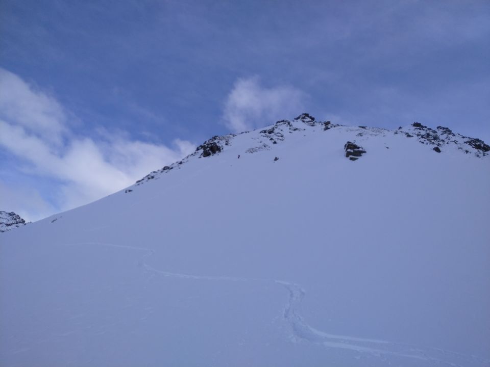 Bei Start in Partenen an der Mautstelle genügend Schnee für Auf- und Abstieg. Seespitz bis Litznersattel alles sehr gut. Ab Litznersattel noch ein paar Schritte auf Skieren dann Skier tragen in felsigem Gelände, aber ohne Steigeisen sehr gut machbar. Anstieg bis Wintergipfel und Abfahrt über den Verhupfgletscher in teils Pulver teils windgepresstem Schnee aber tragend. Abfahrt bis zur Zollwachhütte und dann noch kurzer Anstieg Richtung Lobturm bis auf eine Höhe von ca. 2500m.