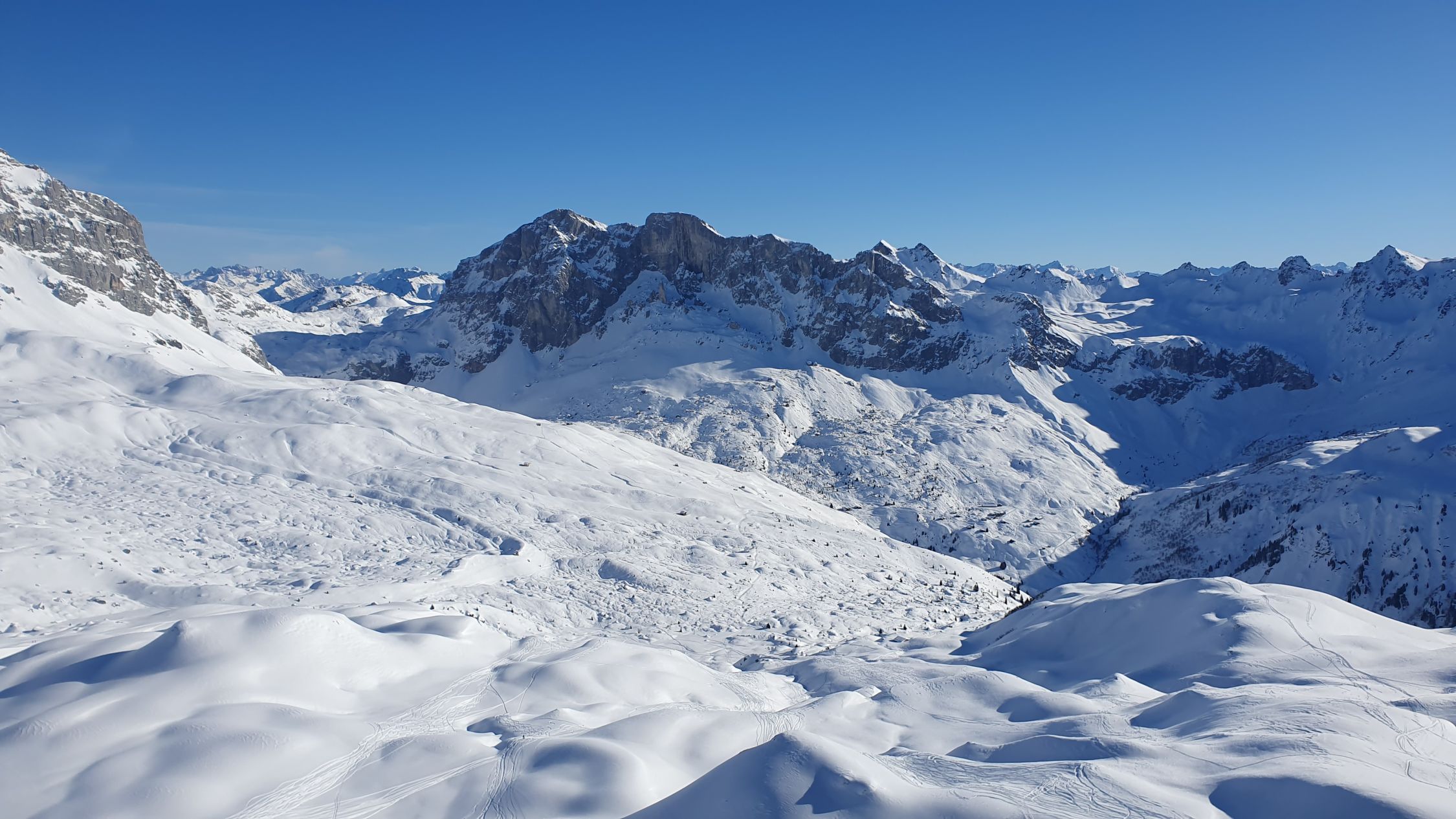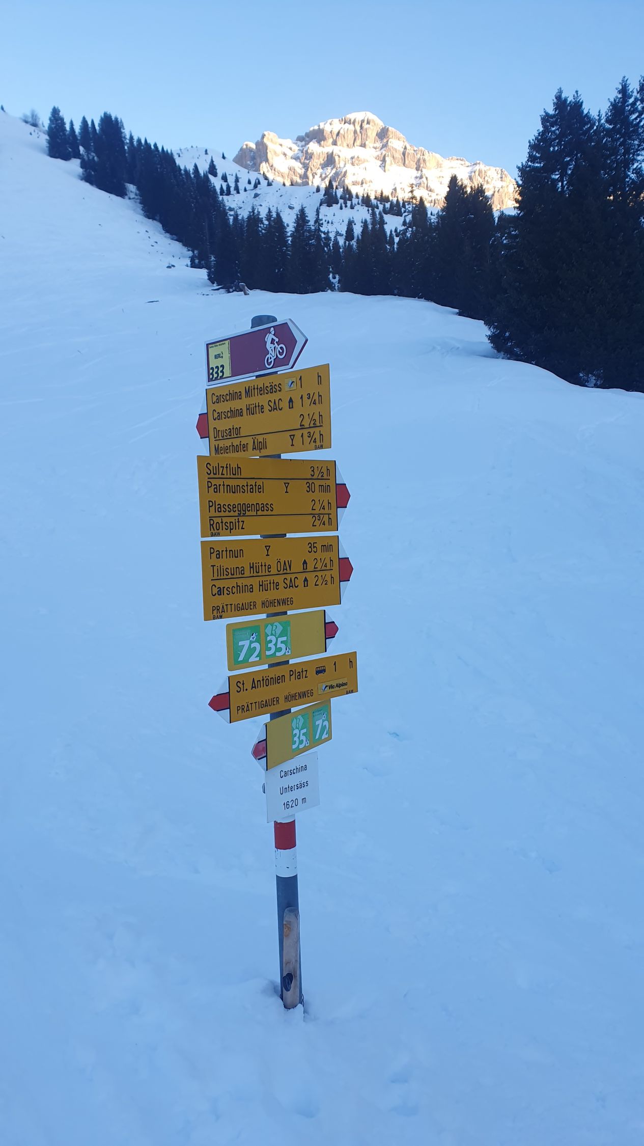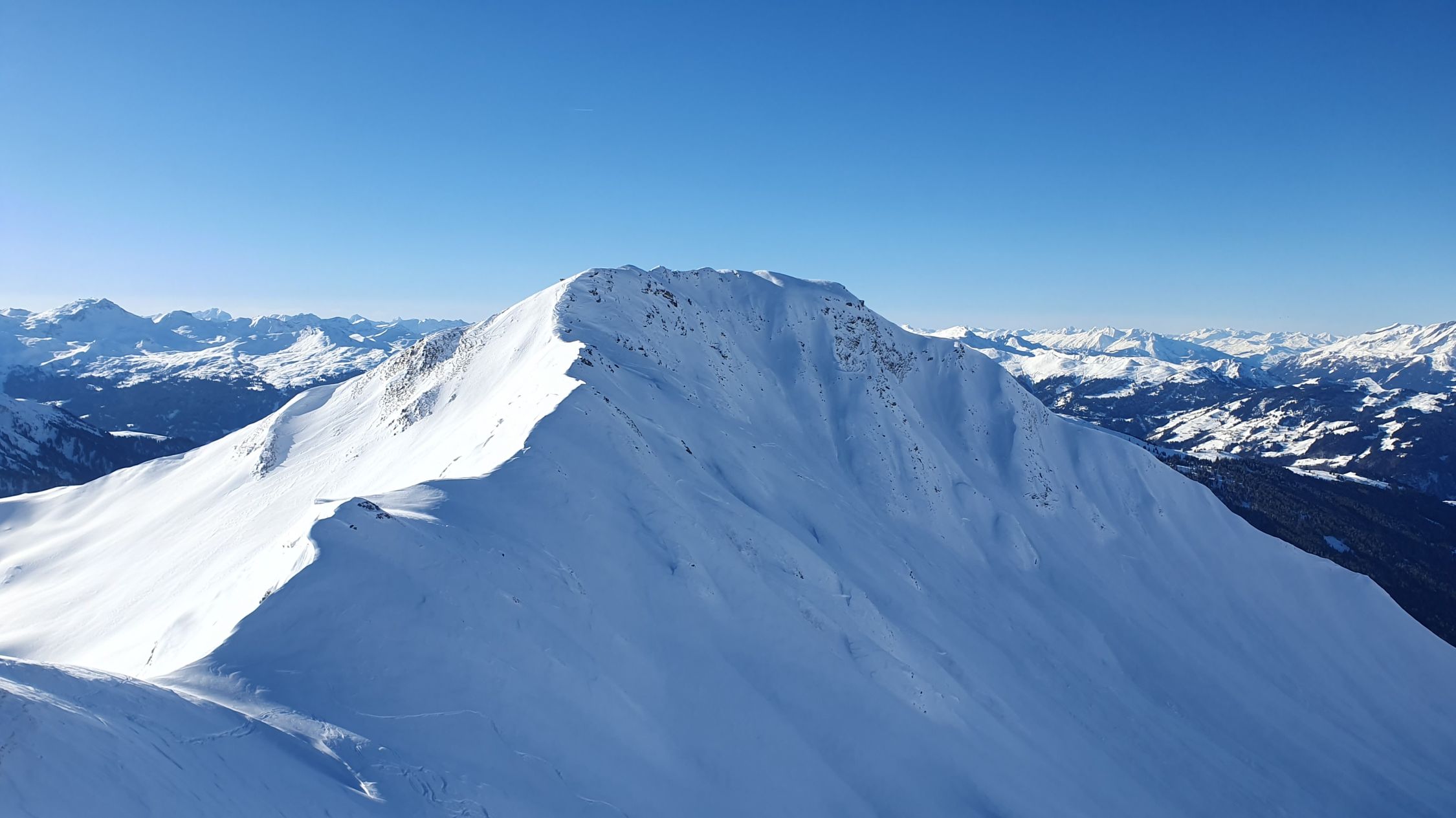 Gestartet sind wir beim Parkplatz Nr. 5. Genügend Schnee vorhanden auf der Strasse welche nach Partnun führt. Während der Tour und auf dem Gipfel glücklicherweise erneut windstill und heute mit warmen Temperaturen. Leute kamen gefühlt von fast allen Seiten, auch auf benachbarte Erhebungen in der Landschaft und fuhren auch fast überall runter. Dennoch verteilte es sich gut.
