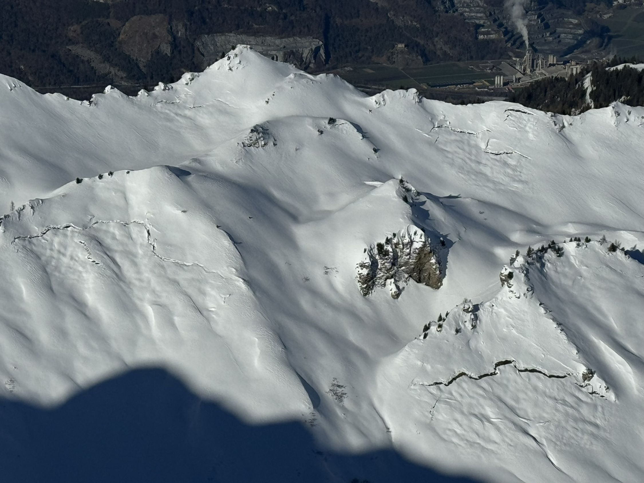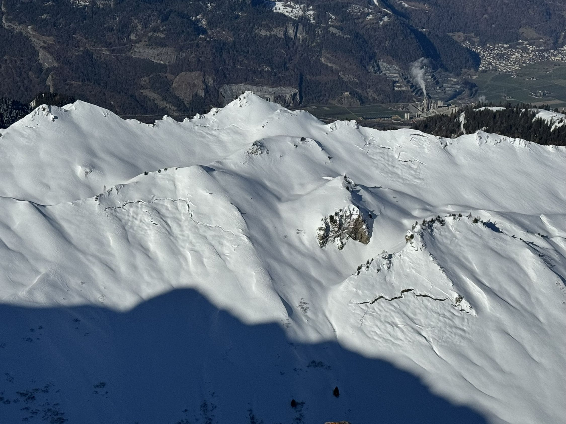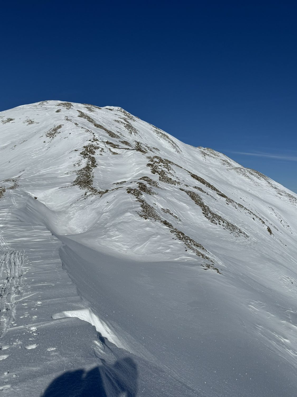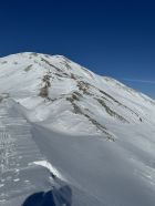 Grate und Rücken stark verblasen. Teilweise besser zu Fuss und Ski tragen. Lawinensituation wie im Bulletin angegeben (3=). Viele Fischmäuler.
