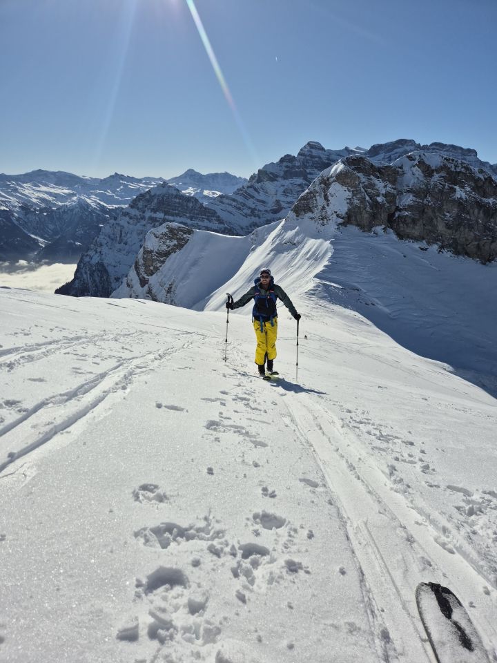 Gipfelkamm (abgeblasen), Tal (pulvrig), ab Sulzalp (hart)