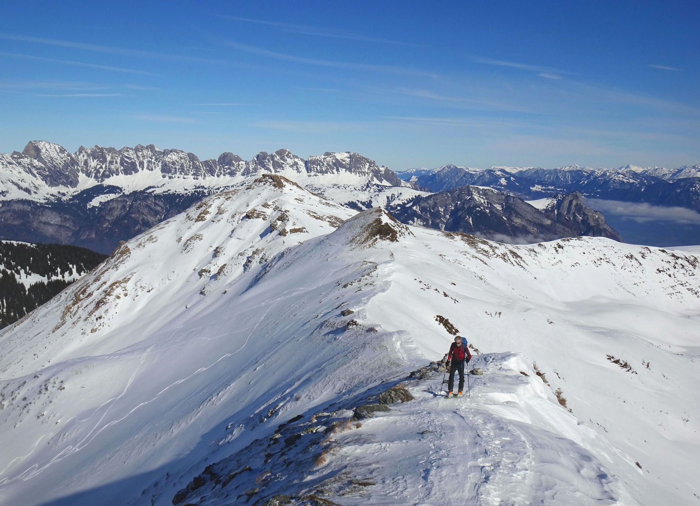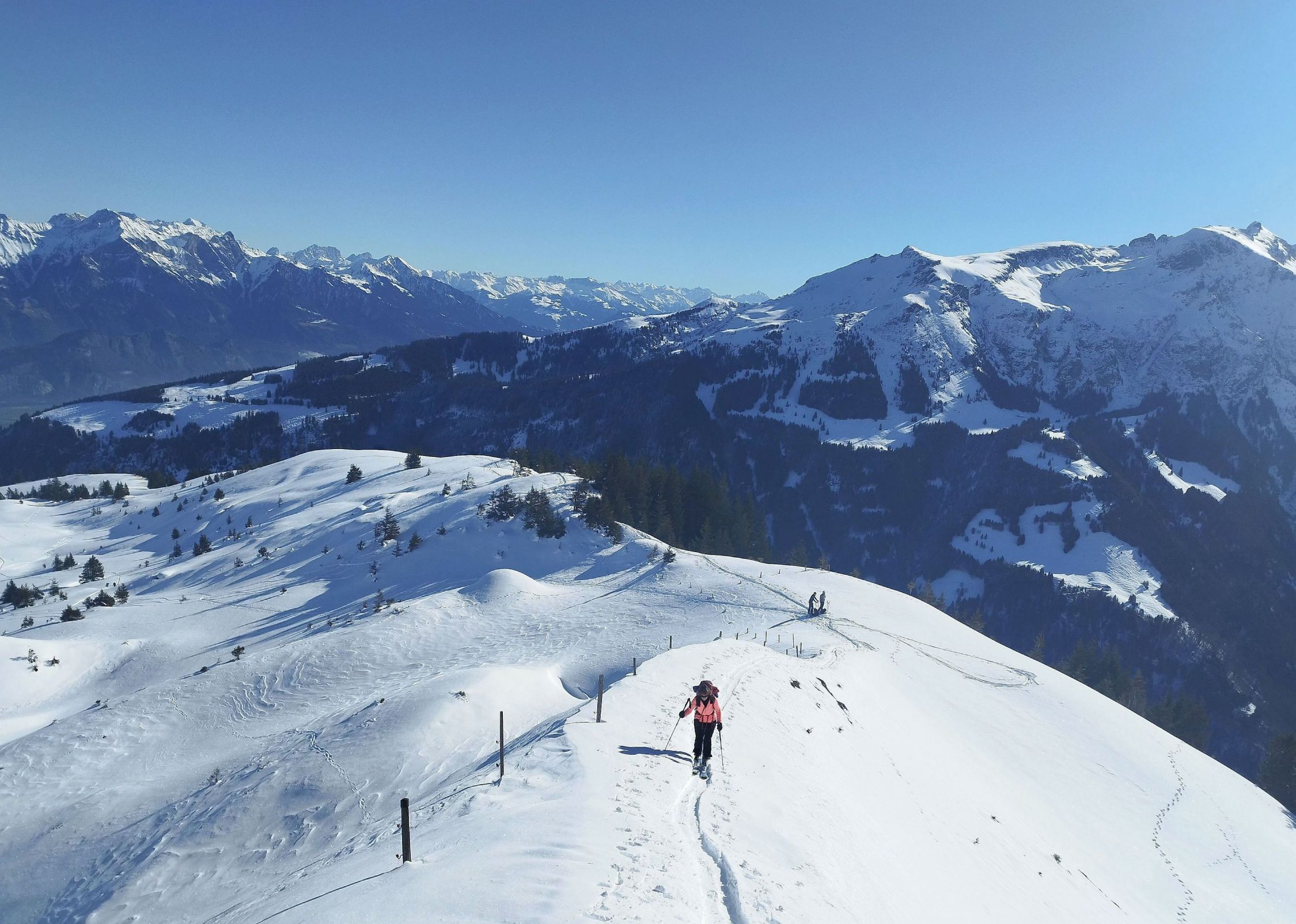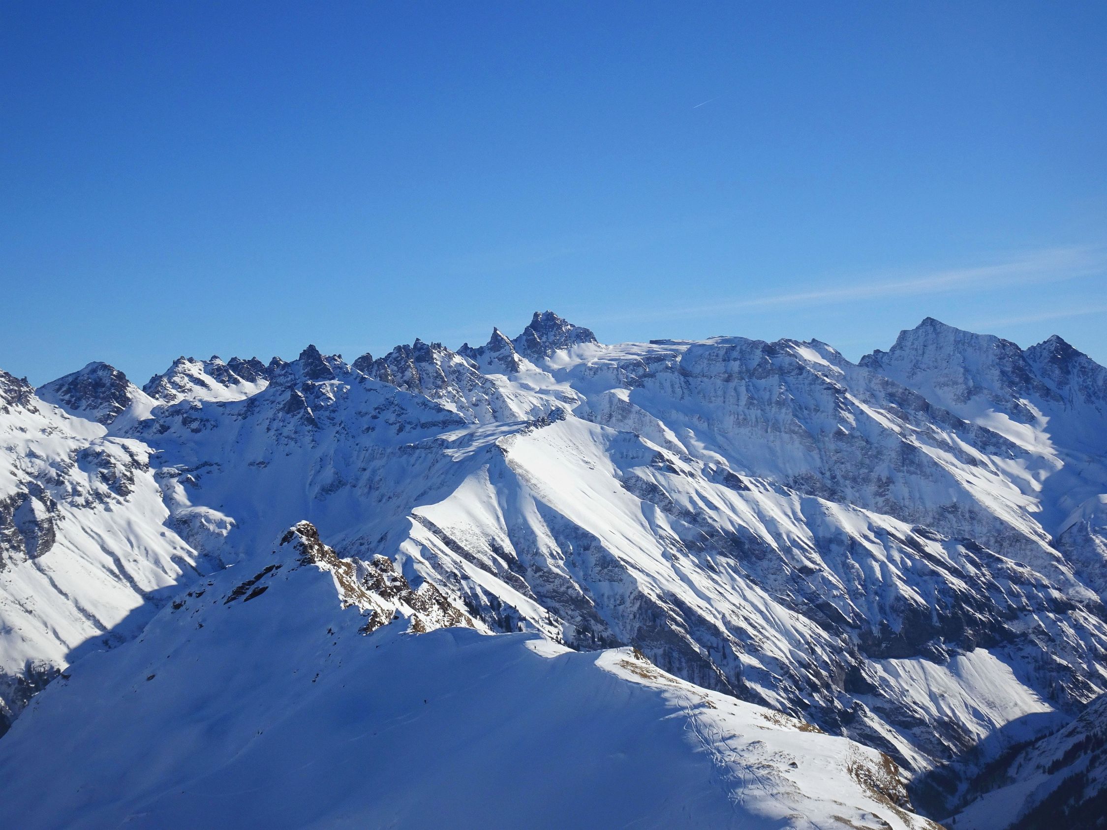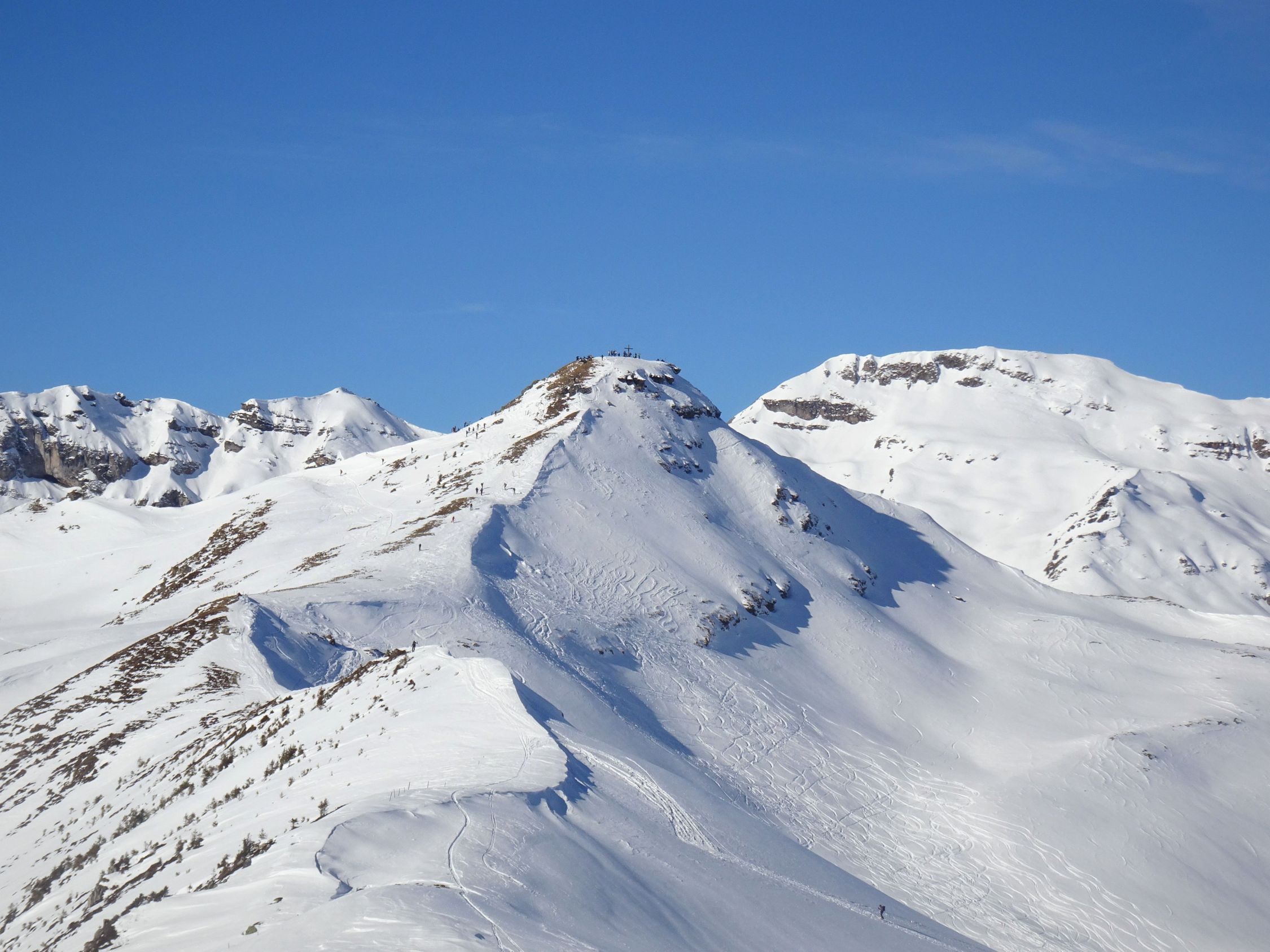 Am Hüenerichopf wie immer viel Betrieb, einige kamen auch von Vermol. Ab der Abweigung zum Ostgrat dann fast alleine unterwegs. Auch Richtung Madchopf nur wenige Tourengeher.