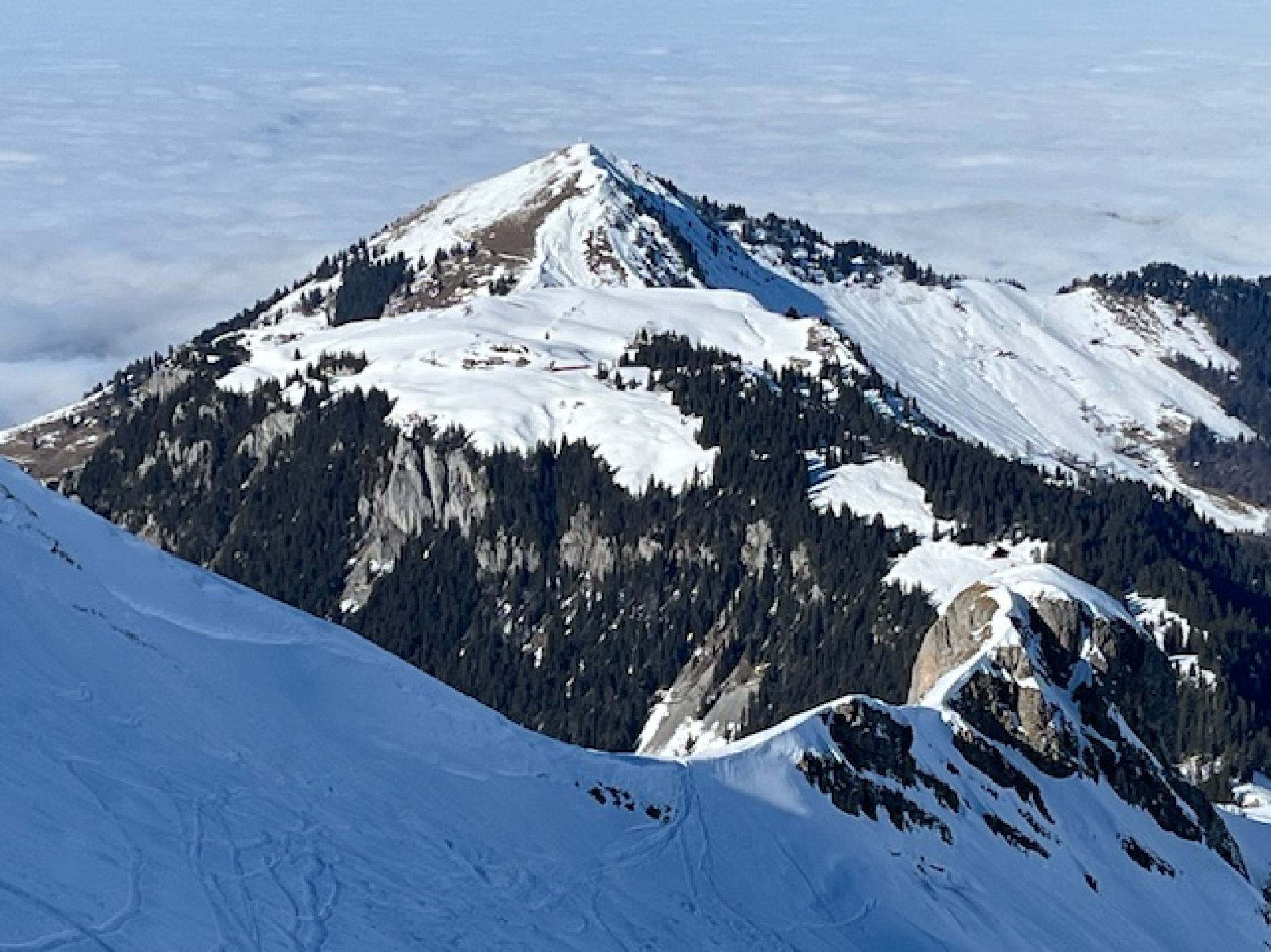Maria-Rickenbach ist praktisch schneefrei. Bis Ahorn Fussmarsch. Dann genügend Schnee bis auf den Grat. Toller Tourentag mit schönem Pulverschnee. Stark verfahren vom Wochenende aber Abfahrt trotzdem ein grosses Vergnügen.