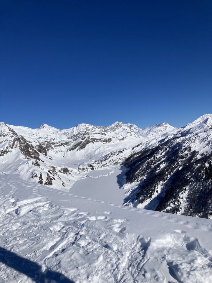 Abfahrt: Oberer Teil Pulver weiter unten weicher Schnee. Bin ca 14 Uhr abgefahren. Zuoberst gibt es noch Platz für eigene Spuren.