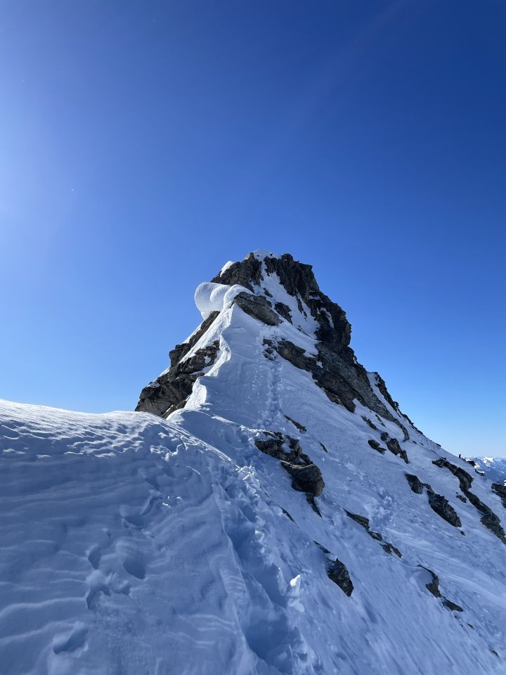 Fildrich gut eingeschneit, Steibode Pulver/Presspulver, Steibodehang mit guter Spur, Wechte relevant gross, am Ostende mit Ski passierbar. Weiter im Presspulver/Deckel, durchgehend Schnee aufs Landvogtehorn. Grat zum Gsür mit eher wenig Schnee, zt Trittschnee, oft aber schattseitig noch ungesetzter Pulver, zwischen Felsblöcken vereinzelt tief einsinkend. Deshalb Umkehr an Fels-Schlüsselstelle. Fixseil nicht gesehen.