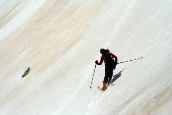 Sicher noch eine Woche gut. Am Morgen etwas hart (Pickel & Steigeisen) aber gut aufgefirnt fuer die Abfahrt um 10.30.