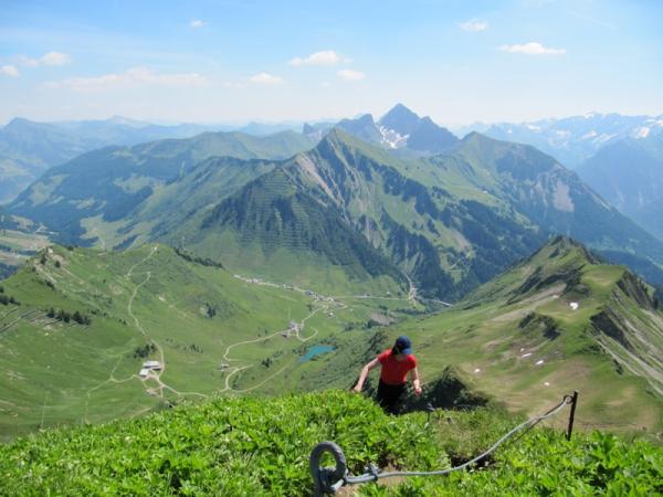 Schöne Bergwanderung mit leicht „alpinem“ Finale am Ostgrat. Aussicht vom höchsten Gipfel des Bregenzerwald ist grandios! Weiterweg zum Hahnenkopf bietet schöne Tiefblicke nach Damüls.