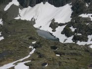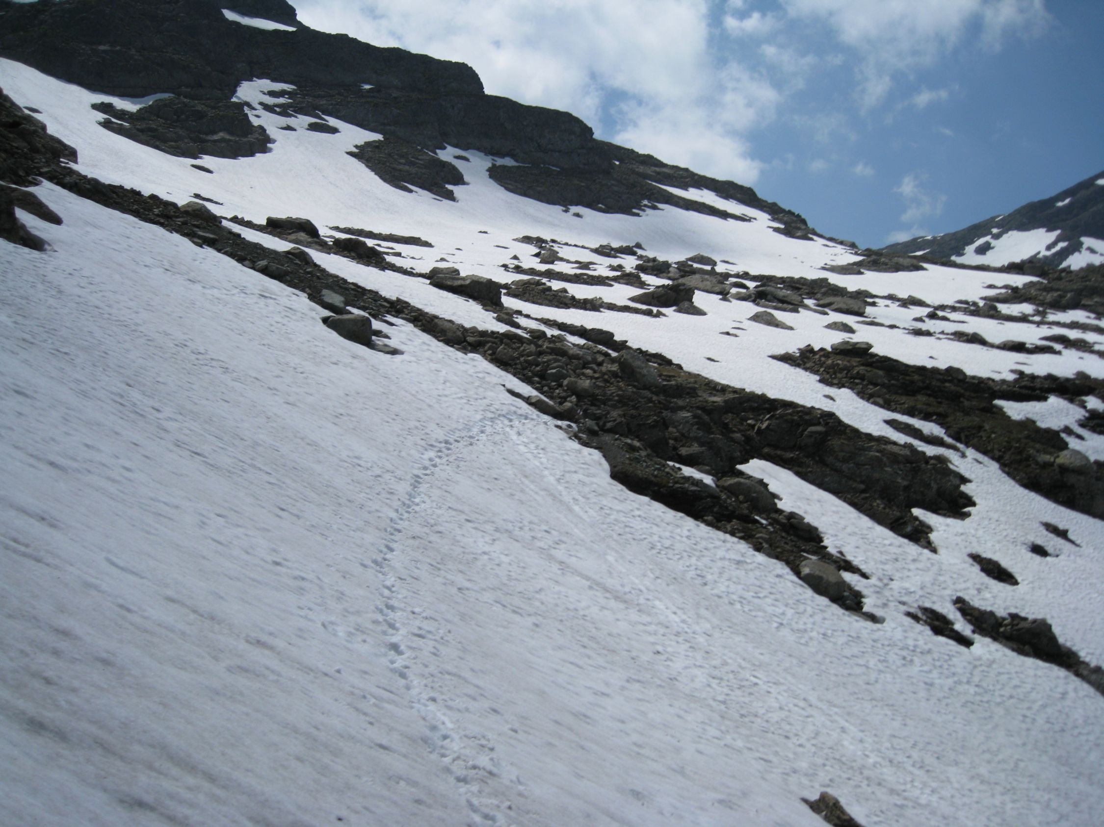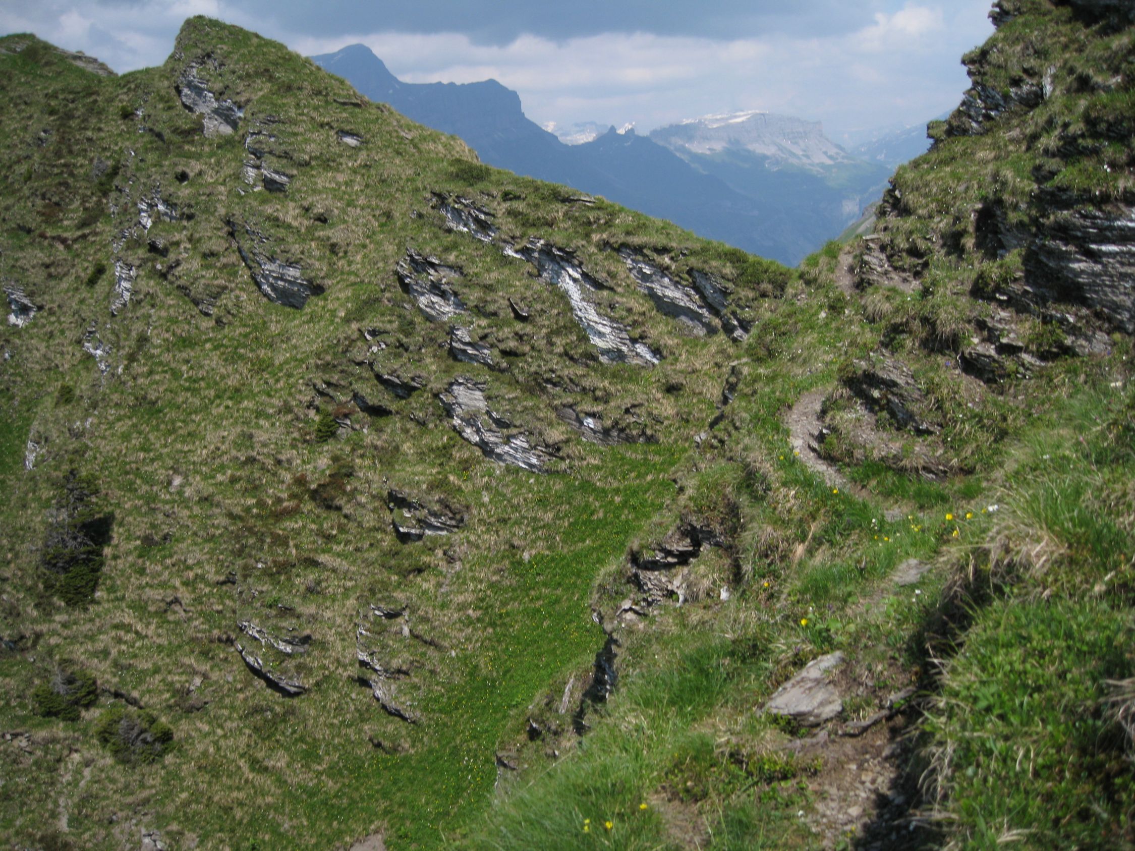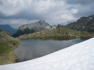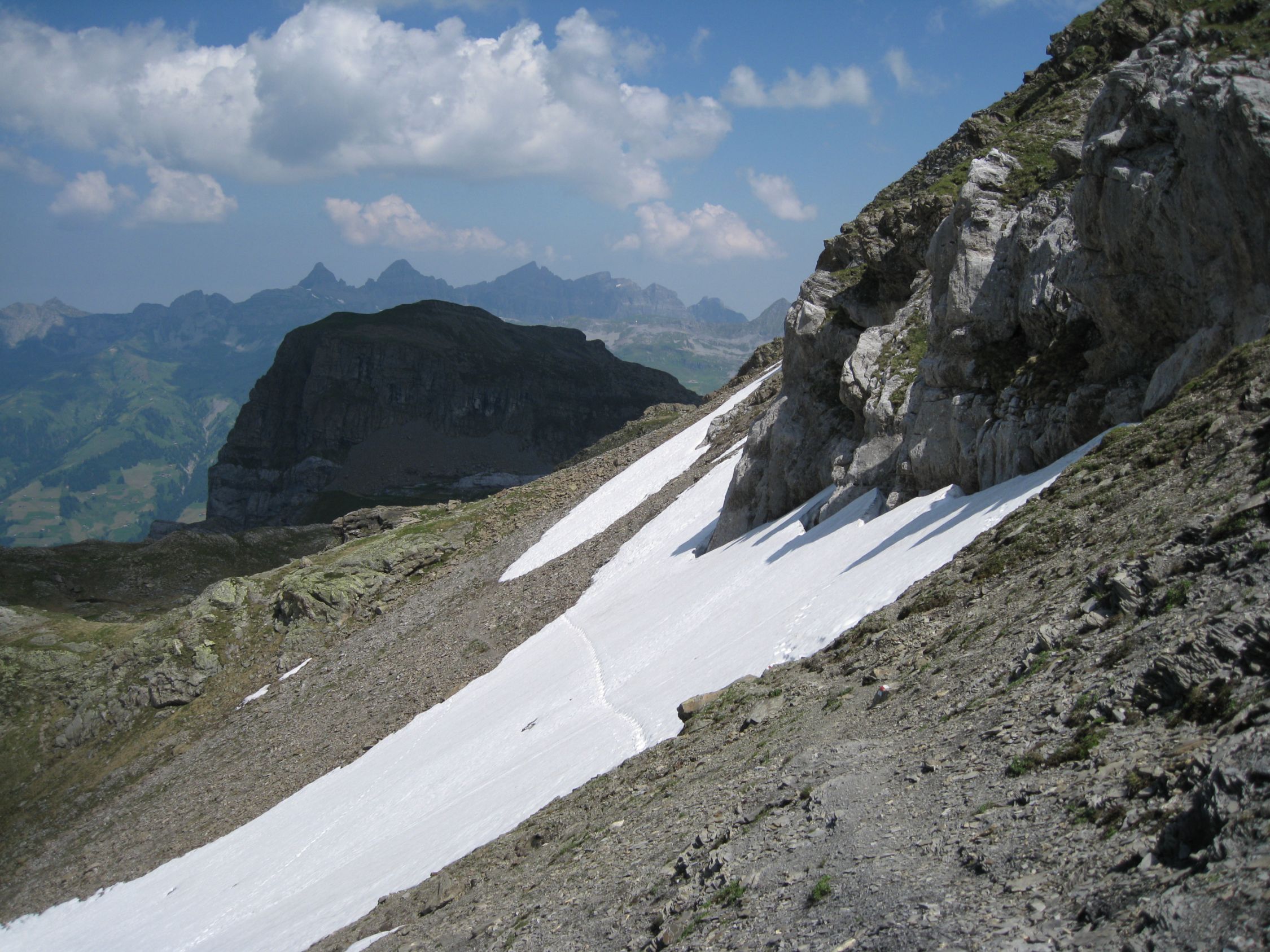 Mit der Jetonbahn von Witerschwanden zum Eggenbergli. Übers Obere Eggenbergli zur Wängialp und von dort auf die Wängichulm. Dem Bergweg entlang zum Übergang aufs Platti. Heinzelmänchen haben den Weg aufs Platti von den Winterschäden repariert.(Vielen Dank Peter und co.) Kurzer Abstieg zum Wegweiser und über die Grauen Platten Richtung Hoch Fulen. Einige "Löcher" auf den Platten sind noch knapp mit Schnee bedeckt,es herrscht akkute Einbruchgefahr.(Siehe Bild) Im Aufstieg zum Hoch Fulen müssen noch recht grosse und steile Schneefelder traversiert werden. Auf dem langen Grat zum Hoch Fulen meistens aper nur noch ein paar kleine Schneeplätze. Die Fernsicht heute nicht ganz optimal. Abstieg zum Wegweiser, dann in leichter kraxelei auf den "Franzosenhut" des Napoleon.(Burgegg) Imposanter Tiefblick auf den Stafel und aufs Haldi. Kurzer Abstieg zu den Burgseelis mit dem Gipfelkreuz. "Bartli" Jules getroffen, er gehört zur Burg wie die beiden Seelein. Ein Stück mit ihm abgestiegen, sehr kurzweilig für wahr! Unsere Wege trennten sich er stieg über die Horenteifi nach Haldi ab. Mein Weg führte aufs Wängihorn mit Abstieg Nordgrat. Die Flora auf dieser Route ist einmalig. Zurück über die Chulm auf die Wängialp und zum Eggenebergli.