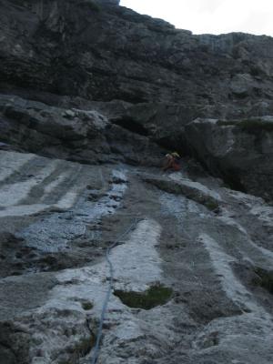 Die 3.,4.,10. und 11.SL waren extrem nass und machten dem Namen der Route alle Ehre -).Meiner Meinung nach wurden in der 7.(6+) und 12.SL(7-) jeweils BH an die falschen Stellen gesetz,was bedeutet,dass dort bei Sturz ein *grounder* möglich ist.
