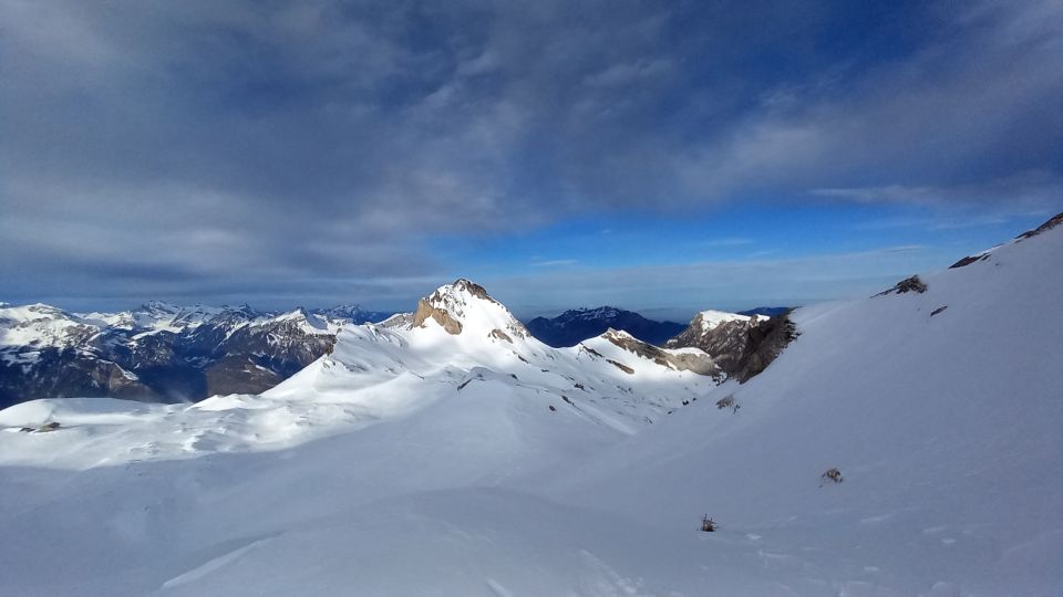 Einfahrt grausam, gefrorene Riesenwindgangeln. Untenraus, speziell die endlos lange Rinne dann sensationell. Eingewehter Pulver und tragender Presspulver entschädigten für die Mühen bis anhin. Schnee langt gut bis Käppeliberg.