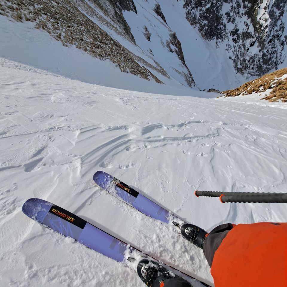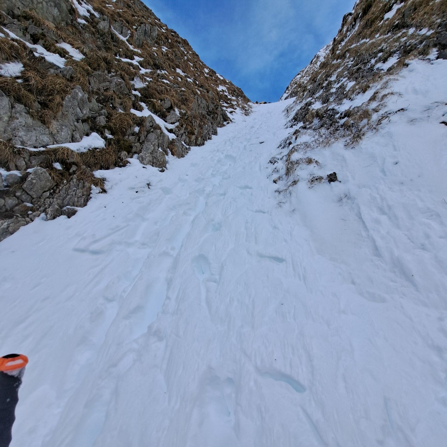 Bin Gemsfluhculi durch linken Schlauch hoch und runter da meist nicht möglich.Schöner Trittschnee bis oben hoch und ,Abfahrt weicher Presspulver-top.Bei Abfahrt Einfahrt 2 m abträppele wegen Schneemangel und 20m. Engstelle zu Fuss runter(meine Ski länger als 1m....)Restabfahrt feine Pulverauflage auf Hart bis Parkplatz-top