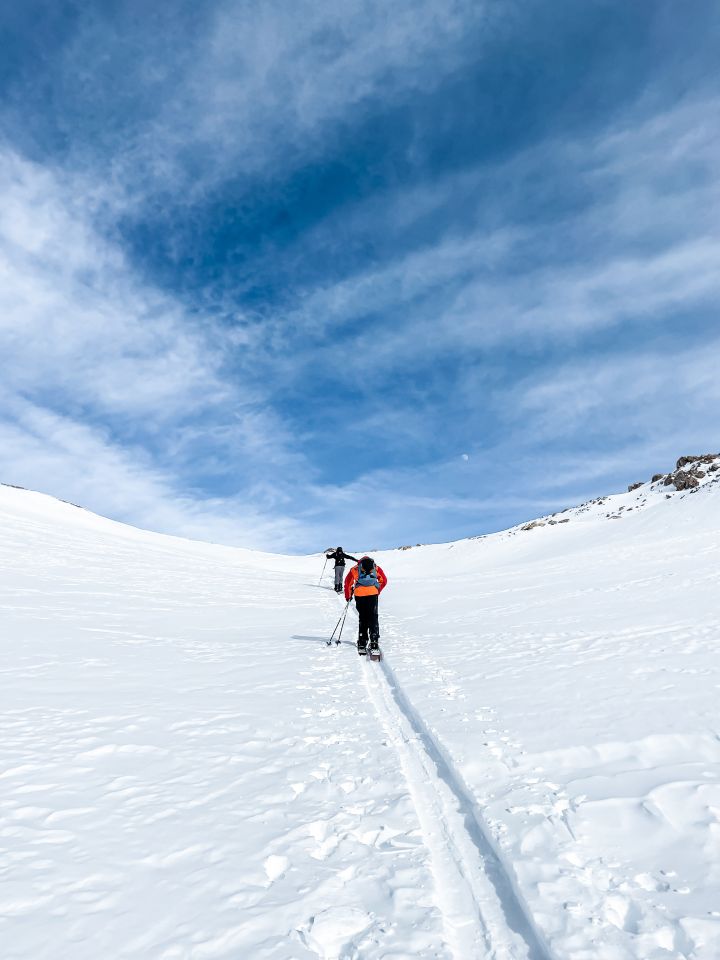 Wetter überraschend gut. Nur paar Schleierwolken. Wenig Wind. Angenehme Temperaturen. Viele Leute am Tarantschun und auch schon viele Spuren. Schnee überraschend gut. Wir hatten uns entschieden, den Gipfel auszulassen. Sind vom Carnusapass zum Lai la Scotga runtergefahren (Top-Pulver) und dann hinter dem Runal über die Alp Nursin runter. Sehr schön zu fahren. Praktisch keine Spuren. Leichter Deckel. Mit dem Board super - mit den Skier vielleicht weniger toll.