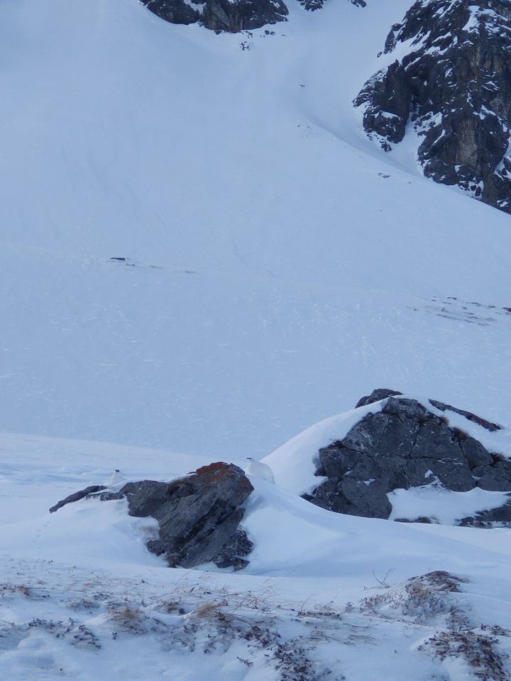 Untere und mittlere Teile pulverig. Ab Obersäss Windböen, insgesamt war die Route jedoch meistens gut geschützt. Schlusshang selbst deckelig (ca. 11 Uhr), ungemütlich. Eher unwahrscheinlich dass dies im Tagesverlauf besser wurde. Viele Schneehühner im Gebiet, wir blieben aber unverletzt ;)