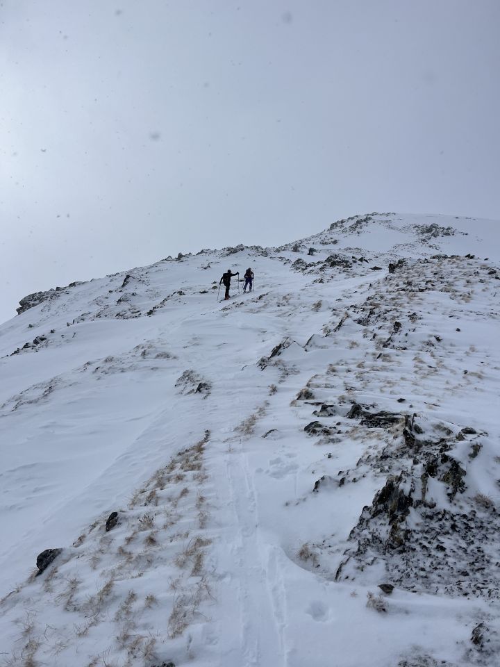 Start im leichten Nieselregen, aufstieg via Schlittelpiste, geschlossene Schneedecke und wenig Neuschnee auf harter Unterlage von der Nacht. Ab 1600m hat sich der Regen zum Glück in Schnee verwandelt. Wenig Wind vs. die letzten Tage. Nach der Steilstufe bei Punkt 2360, wo man kurz die Ski abziehen muss, hat es auf dem Rücken kaum Schnee. Zwischen Grasflächen und den Steinen bis zum Gipfel machbar. Die Aufstiegsroute ist kaum fahrbar. Bei 2500 perfekte Einfahrt in den Nordhang wo ca 10cm Neuschnee auf wenig Triebschnee liegen. Darunter sind manchmal die alten Spuren noch zu spüren, unruhiger Untergrund aber die Abfahrt war durchwegs gut und pulvrig. Erwartungen komplett übertroffen.