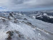 Wenig Schnee am Gipfelhang (haben Skidepot ca 15hm unter Gipfel gemacht) und auf dem untersten Teil vom Waldweg, Steigeisen bei harter/eisiger Unterlage bereits deutlich vor Gipfelhang von Vorteil. Nicht mehr ohne Steinkontakt machbar.