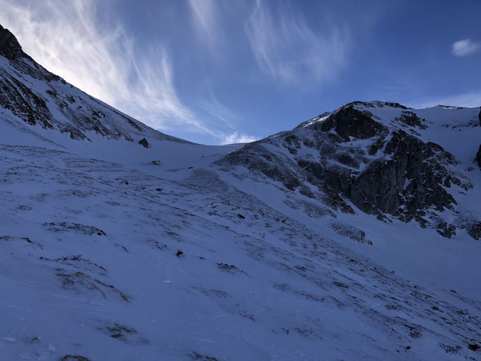 Es hat genügend Schnee von Schwefelbergbad bis zum Sattel. Schnee ist überall Hart, wenigstens kein Steinkontakt und kein Bruchharsch. Der Wind hat im oberen Teil aber auch viel Schnee weggeblasen.