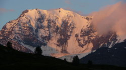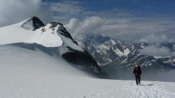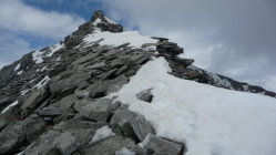 Noch viel Schnee und da es Nachts nicht abstrahlte war bereits im Aufstieg der Schnee zu weich. Ein Italiener hatte Schneeschuhe dabei und kam damit gut voran. Am Südgrat hat es noch viel Schnee und einige vereiste Passagen. Wir waren deutlich zu spät unterwegs, was an dem Fussballspiel des Vorabends lag.