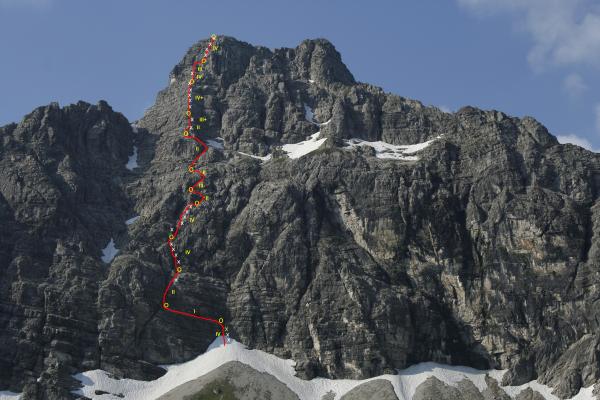 Achtung: Die Route ist trotz Bohrhaken nichts für Anfänger im alpinen Gelände. Es sollten nur Leute einsteigen, die sich auch im brüchigen II-er Gelände bewegen können, ohne ganze Steinlawinen loszutreten. Dafür wartet oben Genußkletterei.