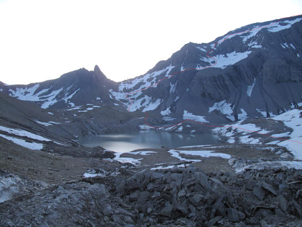 Muttsee kann bei wenig Wasser über "Inseln" überquert und muss nicht mühsam umgangen werden. In der Ruchi-Westflanke liegt noch angenehmer Trittschnee. Fantastische Fernsicht bis in die Berner Alpen und das Bernina-Gebiet.