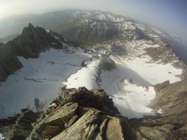 Abseilerei alle 25m ein guter stand (am besten direkt 50m). der siedelengletscher zurück konnte dann gut abgerutscht werden