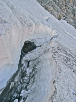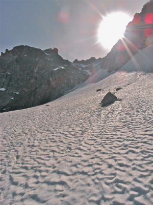 Noch gut. Bei weiterer Ausaperung des steilen Firnaufschwung zum Vernelasattel bald sehr unangenehm.