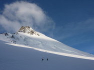 Recht gute Verhältnisse, bis zum Festijoch sind einige Spalten rechts zu überqueren