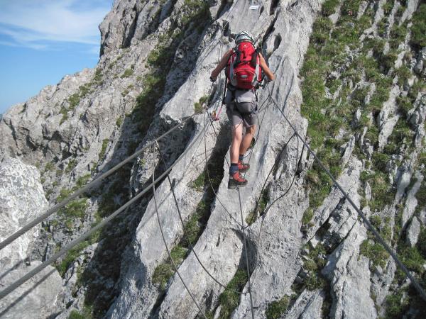 Dieser Klettersteig ist ideal für Einsteiger und richtig schön fürs Gemüt. Um guten Fels oder oft auch Luft unter den Füssen zu spüren. Auch mal in die Tiefe blicken und dabei lachen.