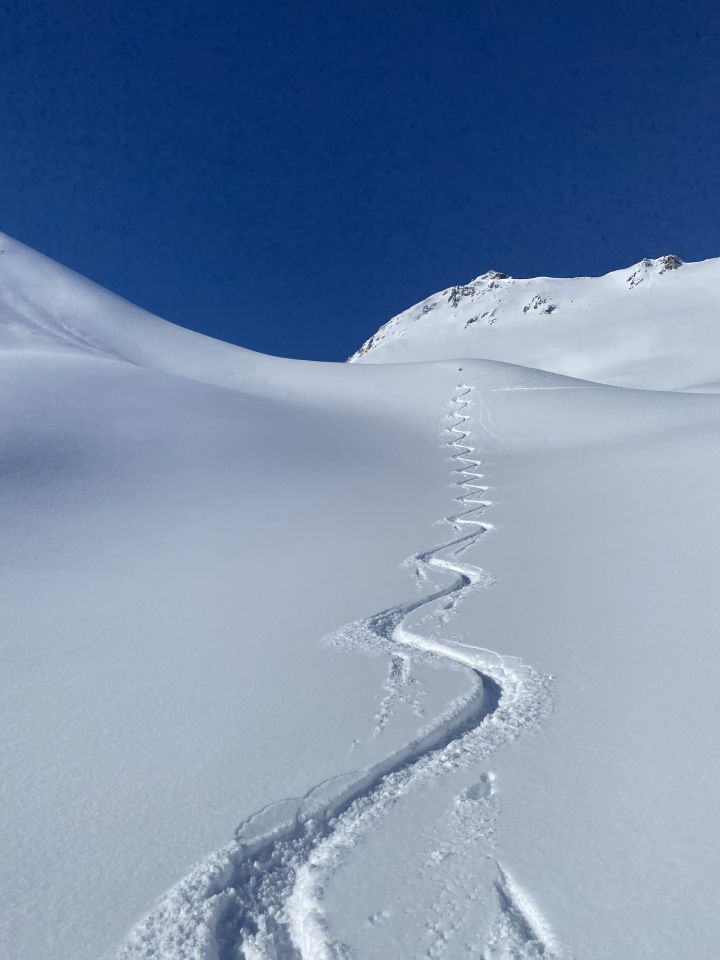 Aufstieg ab Frauenkirch problemlos bei frisch eingeschneitem Gebiete (unten 5 cm im oberen Bereich 25-40 cm). Am Übergang Weg in den Wald erwartet euch eine kurze Tragestrecke (empfehle bis zur ersten Kehre hochzulaufen bevor die Ski wieder angeschnallt werden). Nach Staffelalp Wegquerung wegen des wenigen Schnees zum Sutzibach zu jeder Tageszeit unproblematisch bzgl. Schneerutsch. Ab Bachbett bis ca. 2300 m Höhe hat der Wind den Neuschee deutlich auf der harten Unterlage verfrachtet. Geht aber meist sehr gut zum abfahren. Ab 2100 m eigene Spur angelegt, da außer mir niemand in Richtung Gipfel unterwegs war. Ab 2300 herrlicher Pulverschnee in allen Richtungen. Aufstieg bis Gipfel mit Ski ohne Probleme. Abfahrt bot herrlichen Pulver, der allerdings auf den Südhangseiten durch die Sonneneinstrahlung deutlich feucht geworden ist und für morgen sicherlich nicht mehr so ideal zu fahren sein wird.