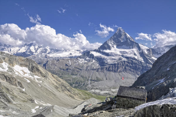 Das Arbenbiwak ist eine ganz wunderbare, ursprüngliche Unterkunft. Zustieg am Schluß über einen steilen Klettersteig. Bis zum Sonntag befindet sich ein Team vom SAC Zermatt auf der Hütte zum Arbeitsdienst. Deshalb sind ausnahmsweise auch Getränke erhältlich.